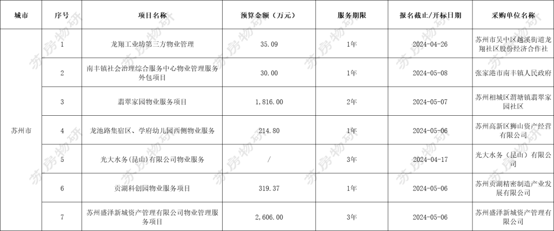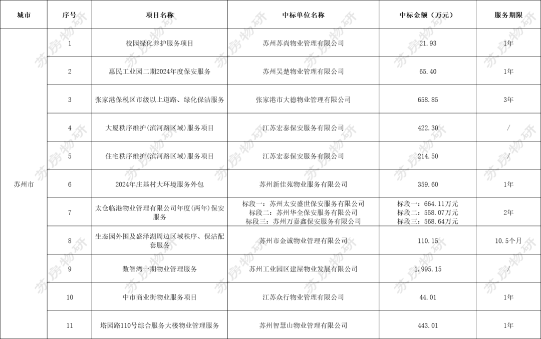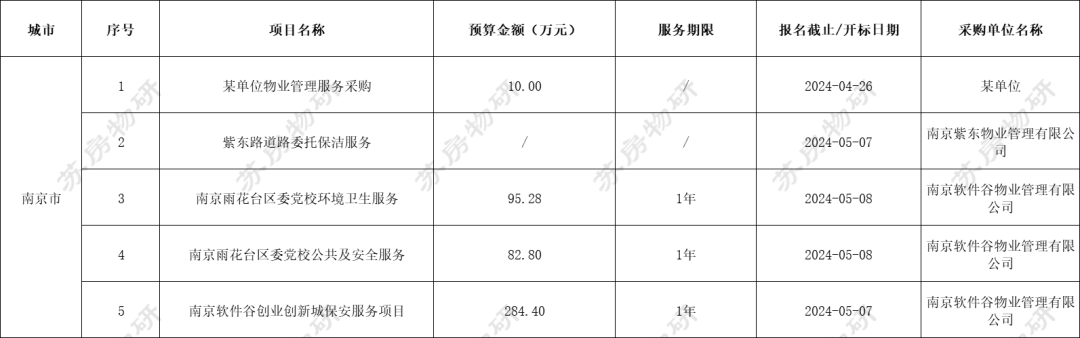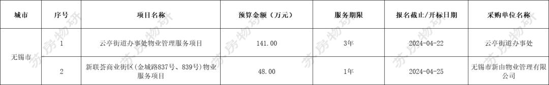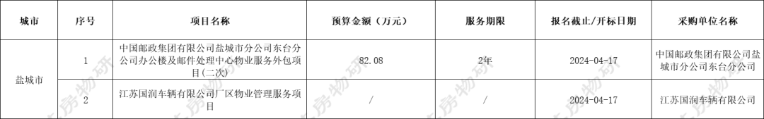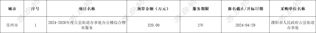 江苏省13市物业招标中标监测 | 2024.04.15