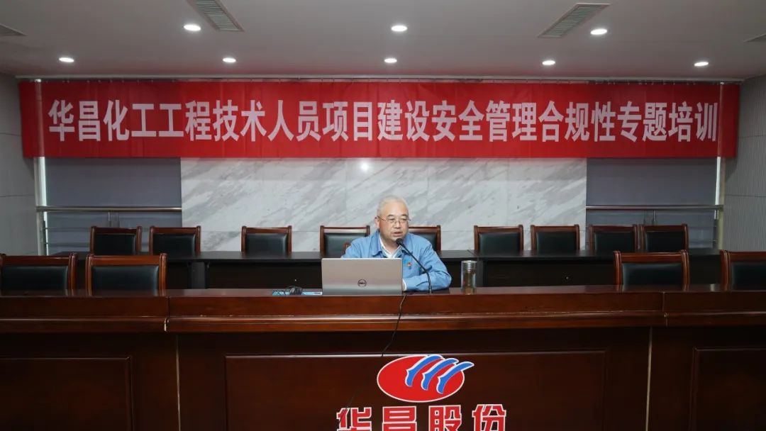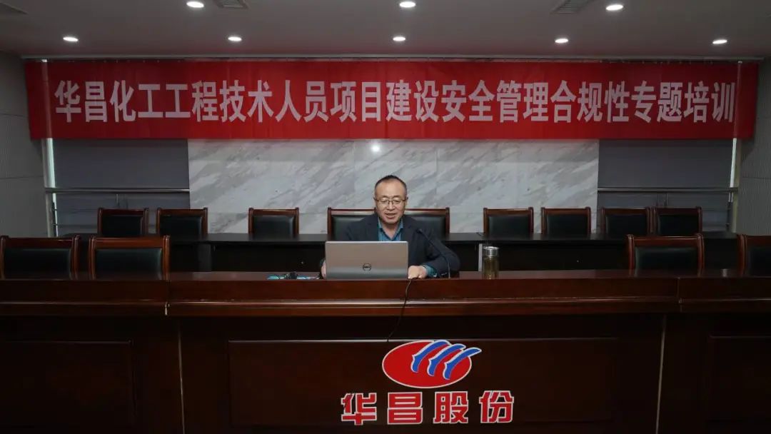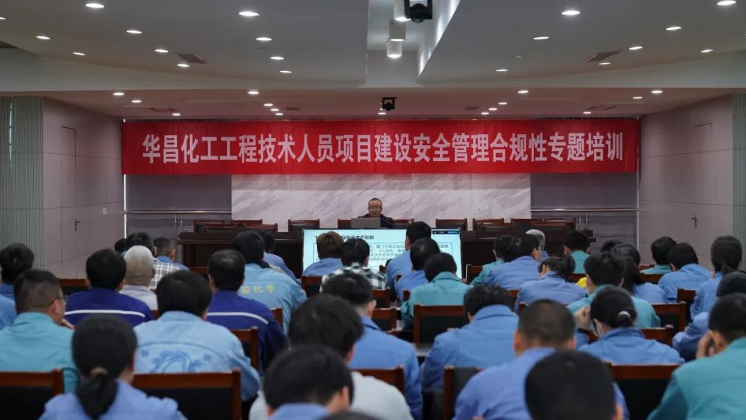 为提高工程技术人员的项目安全管理水平和安全意识,确保工程项目建设安全有序推进,4月12日下午,由技术中心组织,邀请华昌化工总经理助理兼安全总监许浩进行项目建设安全管理合规性专题培训。公司工程技术人员、项目经理、项目组成员、各施工单位项目经理、负责人和安全员共165人参加培训,华昌化工工艺总工程师、技术中心常务副主任、项目办主任陈建如主持培训。