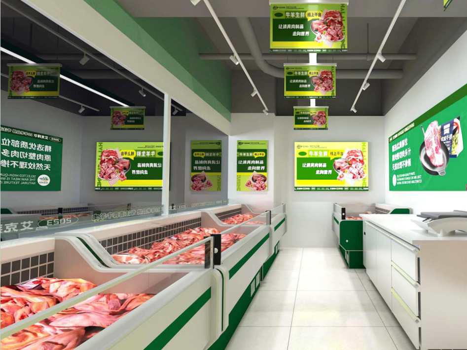 一楼艾克拜尔清真牛羊肉生鲜店装修(面积:102m²);