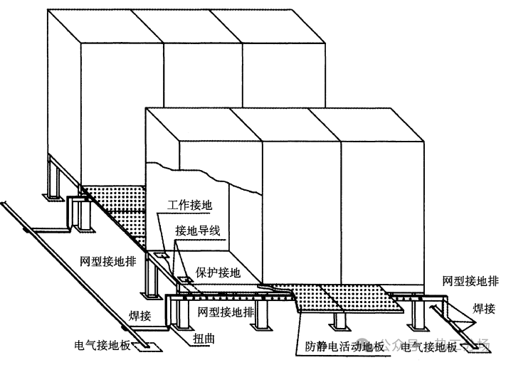 3.7采用网型结构的方案应在机柜支架上、操作台底部敷设接地连接导体作为网型接地排,连接成局部接地网,网型接地排之间的连接应采用焊接方式。