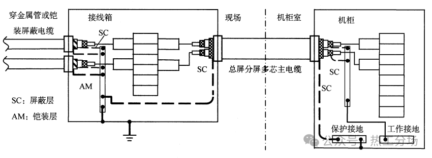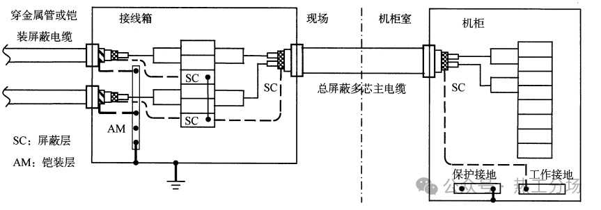 4.3信号线的外屏蔽层、金属保护管、铠装电缆的金属铠装保护层应在两端接到保护接地。