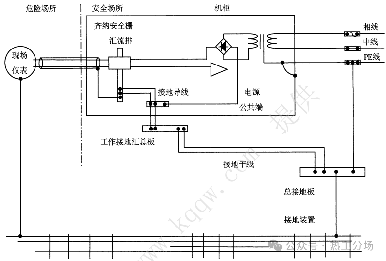 3.5齐纳式安全栅应符合图3 .5 的本安系统接地连接示意图。
