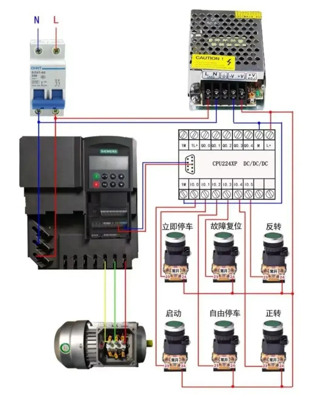 电工实战经验 PLC 变频器,伺服驱动器,电机实物接线图
