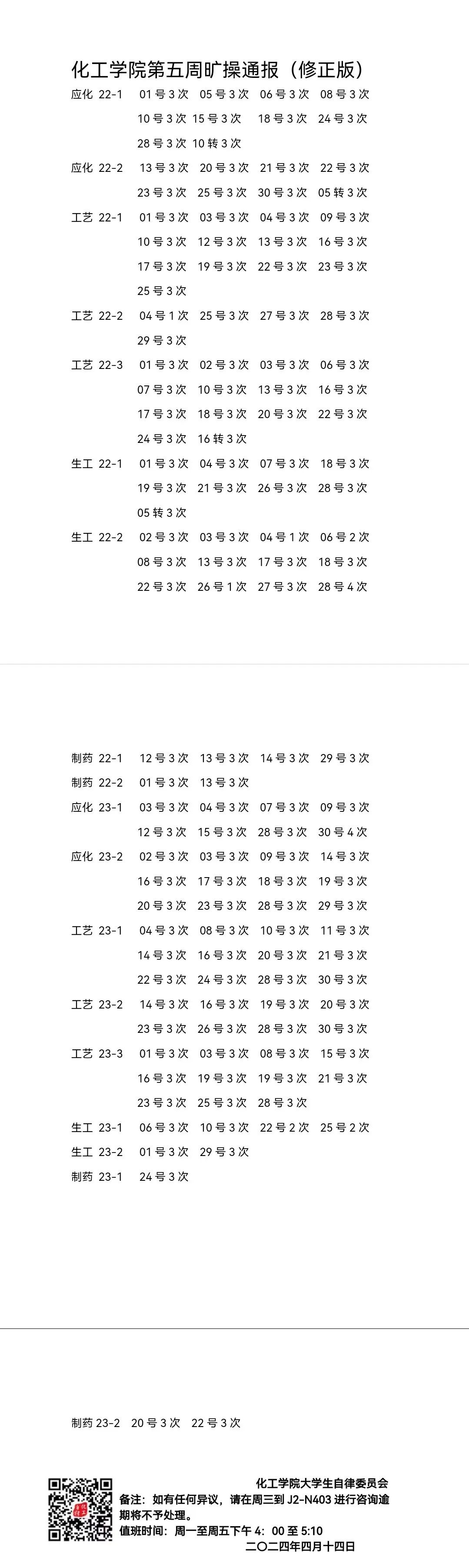 化工学院第五周旷操通报(修正版)