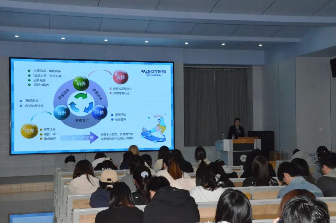 米旗HR通过视频向同学们介绍了米旗发展历史、生产模式及生产流水线、企业使命、企业愿景、核心价值观等方面,以生动简洁方式向同学们做出系统详细阐述,同时为大家详细解读本次招聘条件,以贴合同学们的就业需求。