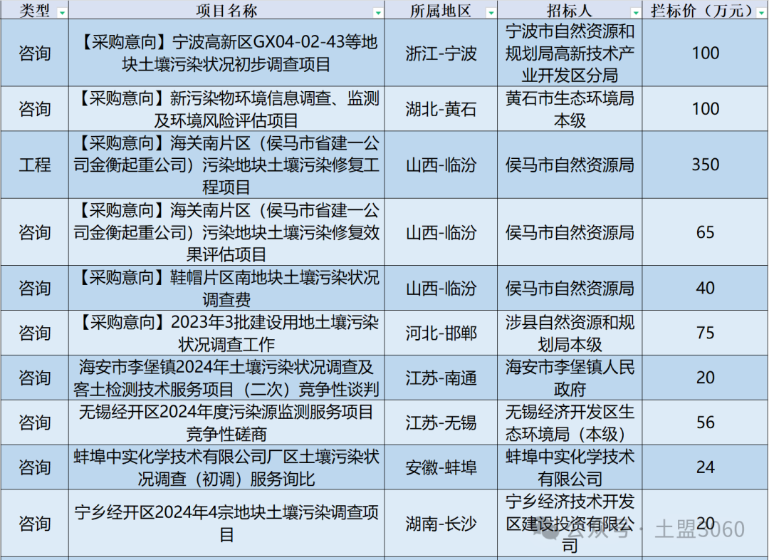 土壤,地下水修复招标项目早知道