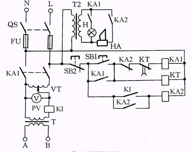当供电电压在交流接触器吸引线圈额定电压的85%以下时,启动接触器衔铁将跳动不止,不能可靠吸合,在交流接触器的控制回路中串联一只整流管,改为直流启动交流运行,就可以避免上述问题。交流接触器低电压启动线路如图14所示。按下按钮SB1,经二极管VD半波整流的直流电压加在交流接触器KM线圈上,KM吸合。其辅助触点将二极管VD短接,交流接触器投入交流运行。