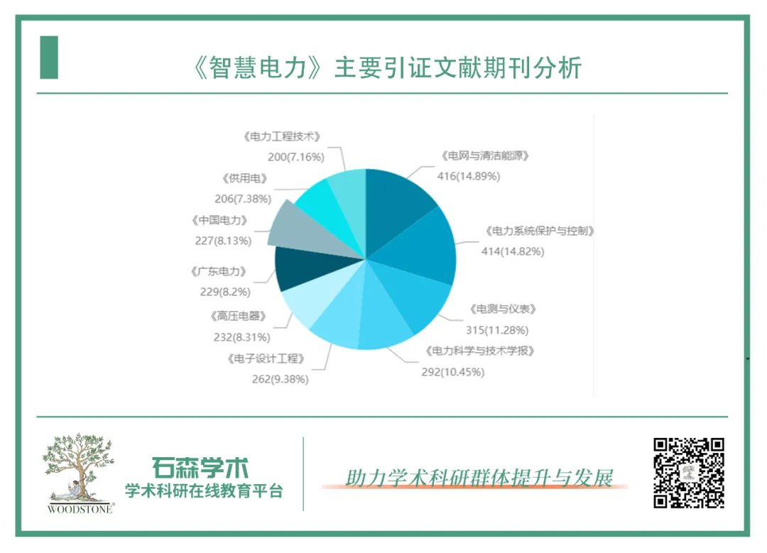 从引证文献期刊来看,《电网与清洁能源》占比最大,为14.89%,其次是《电力系统保护与控制》、《电测与仪表》等。