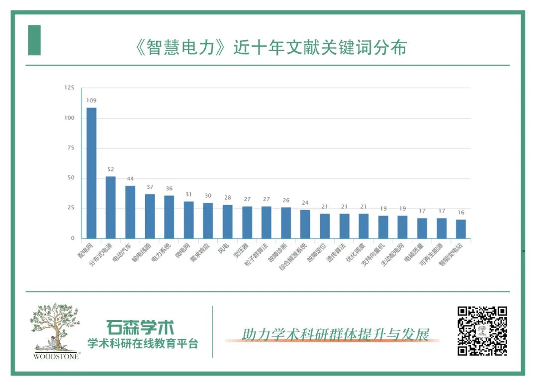 在该期刊中,“配电网”栏目的发文量最高,其次是 “分布式电源”、“电动汽车”、“出点线路”、“电力系统”等。