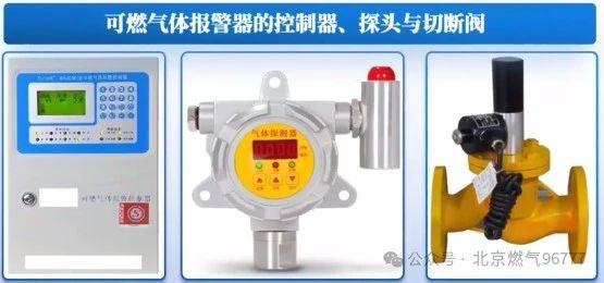可燃气体报警器检测到一定浓度的燃气时,会进行报警,同时切断阀会自动切断,保护用气安全。