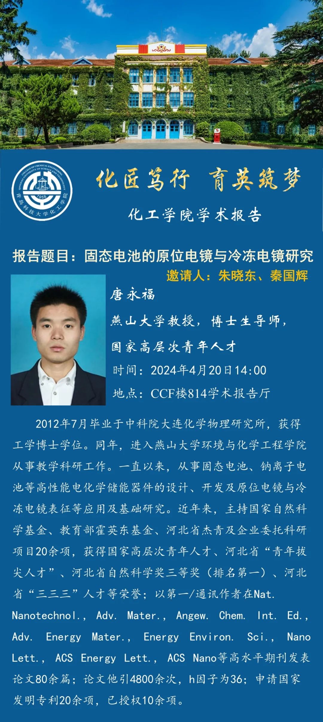 化工学院学术报告——唐永福:固态电池的原位电镜与冷冻电镜研究
