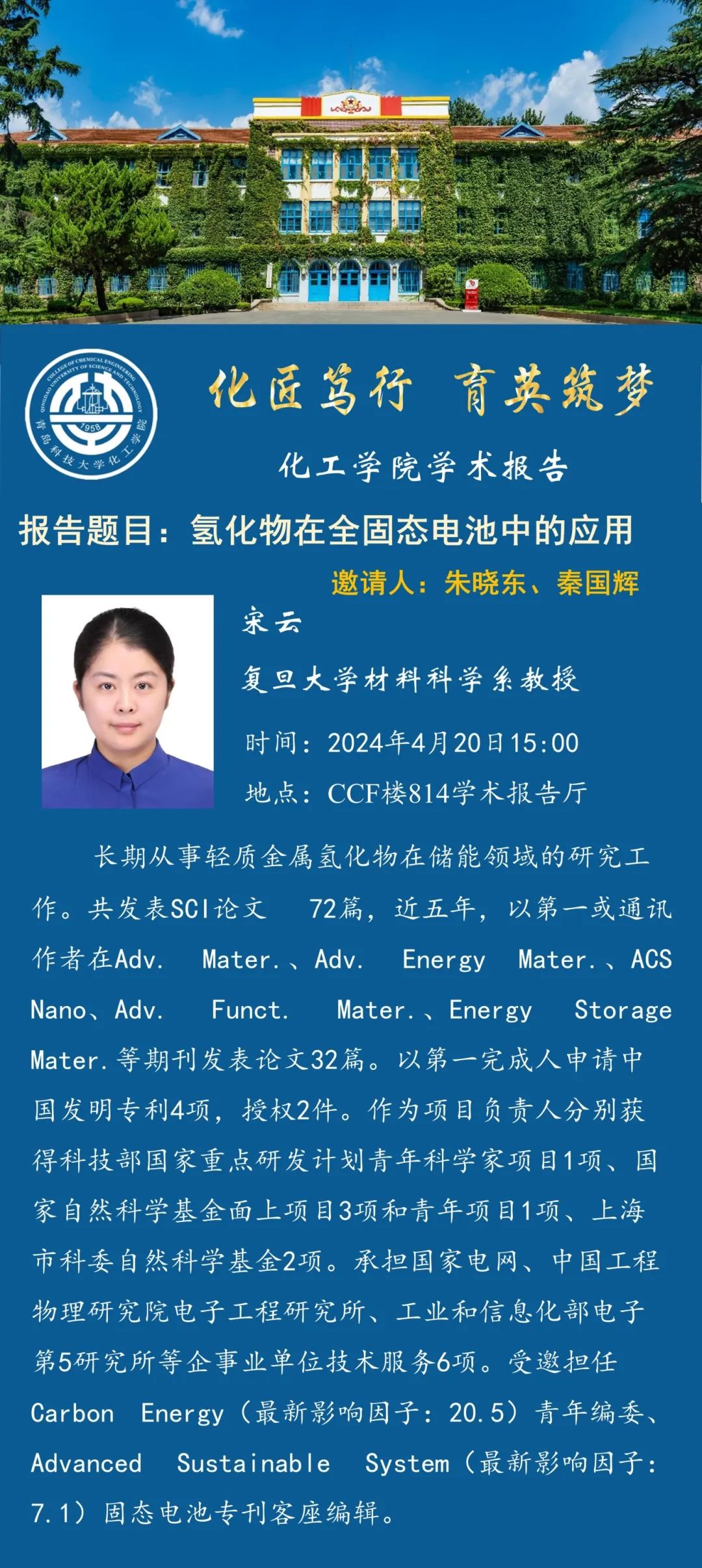 化工学院学术报告——宋云:氢化物在全固态电池中的应用