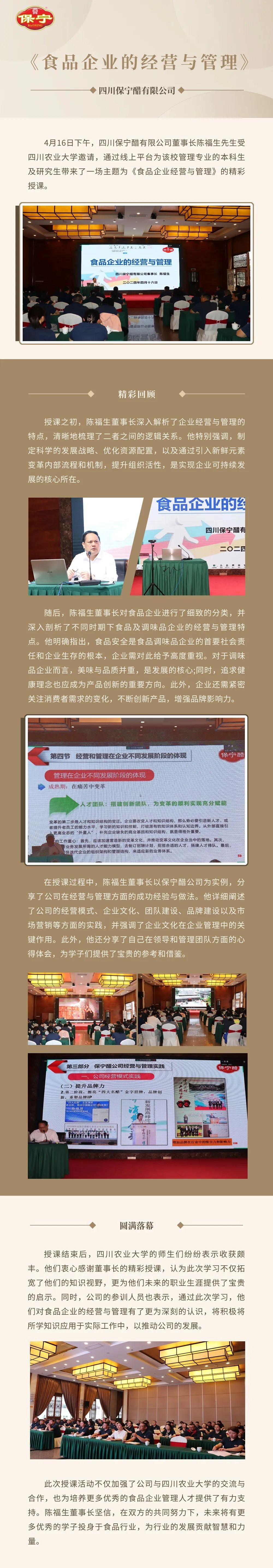 保宁醋公司董事长精彩授课:深入解析食品企业的经营与管理之道