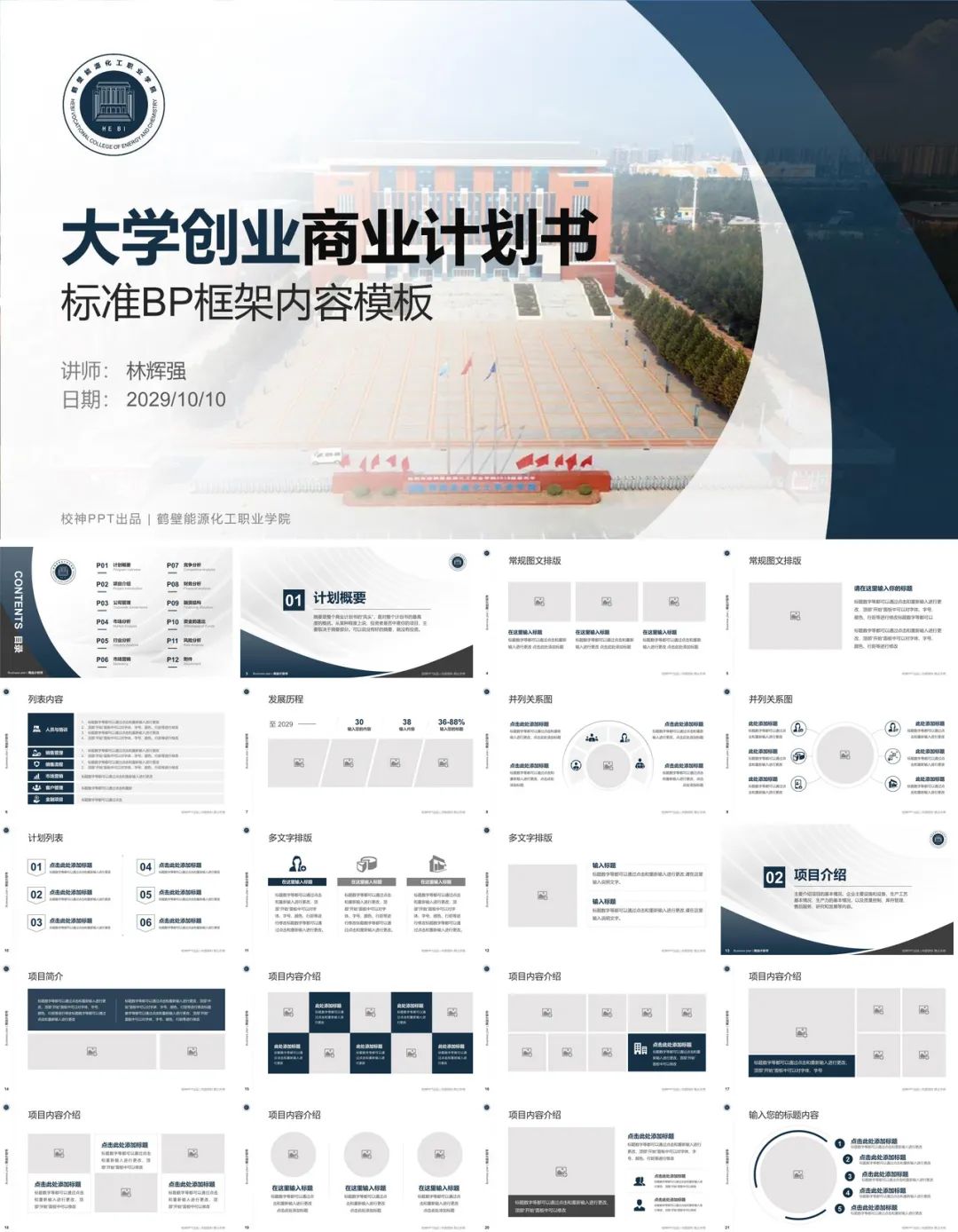 第3套:鹤壁能源化工职业学院大赛计划书/路演/网评PPT模板(146页)