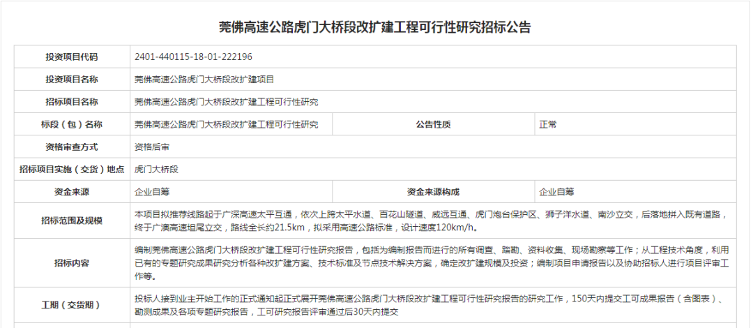 尽管该公告未透露投资额度、大桥现状如何改扩建等相关信息,但此前,莞佛高速公路虎门大桥段改扩建工程已列入广东省发改委2024年重点建设前期预备项目。