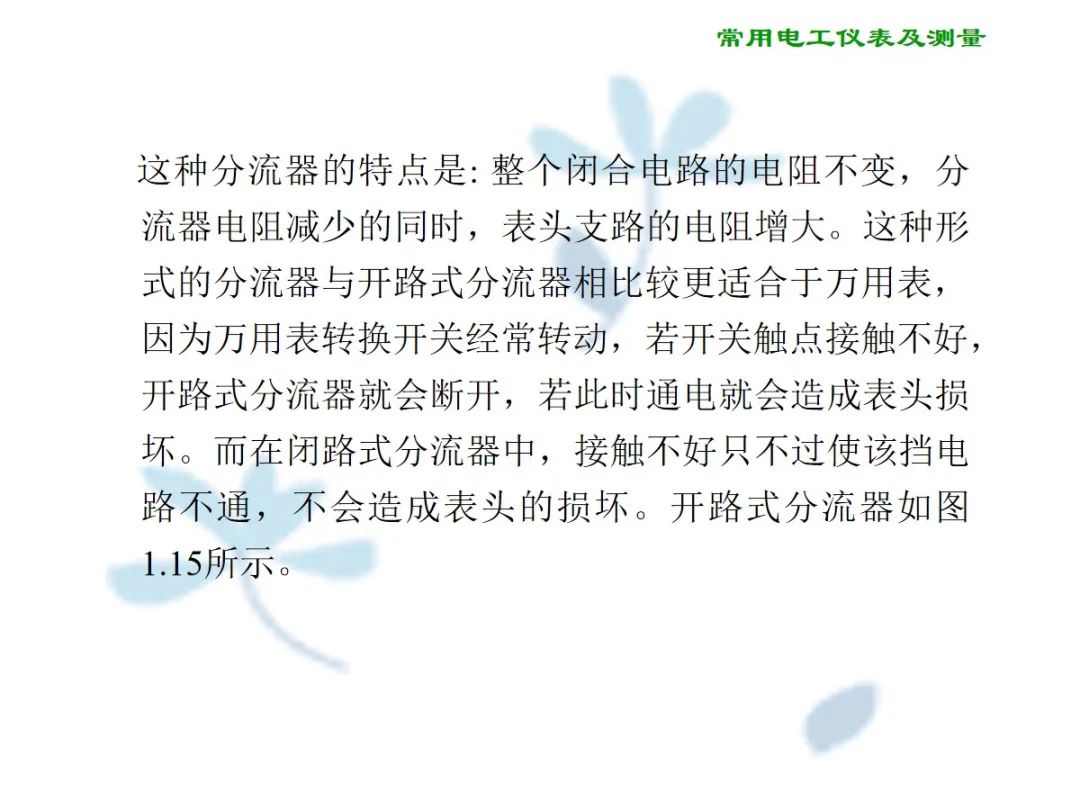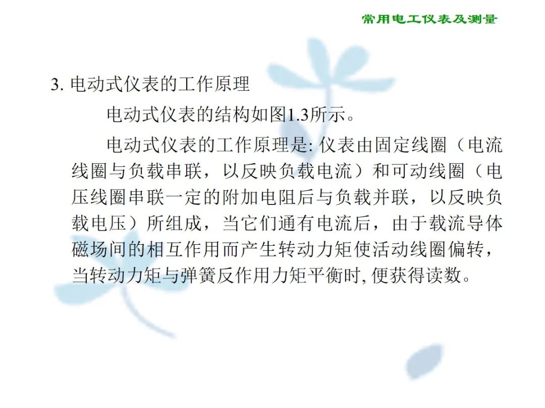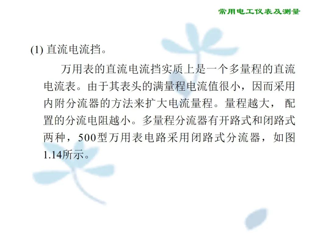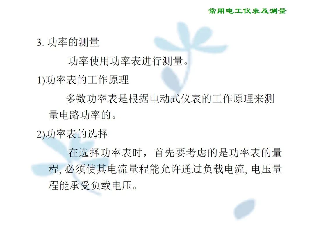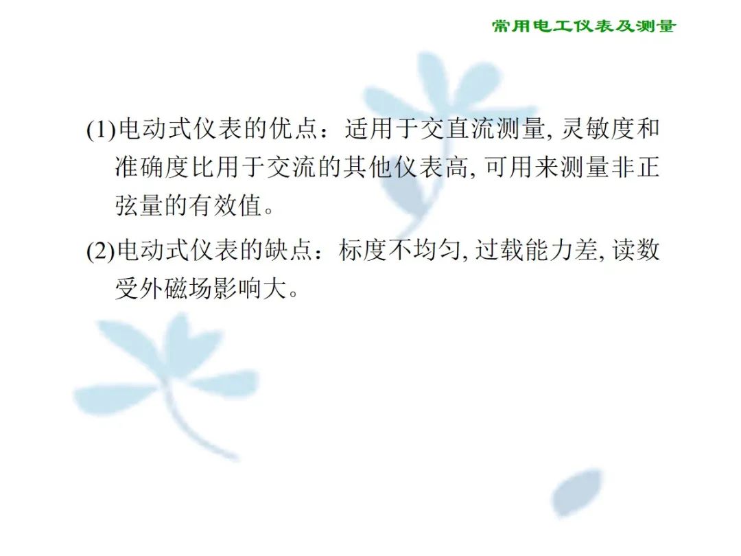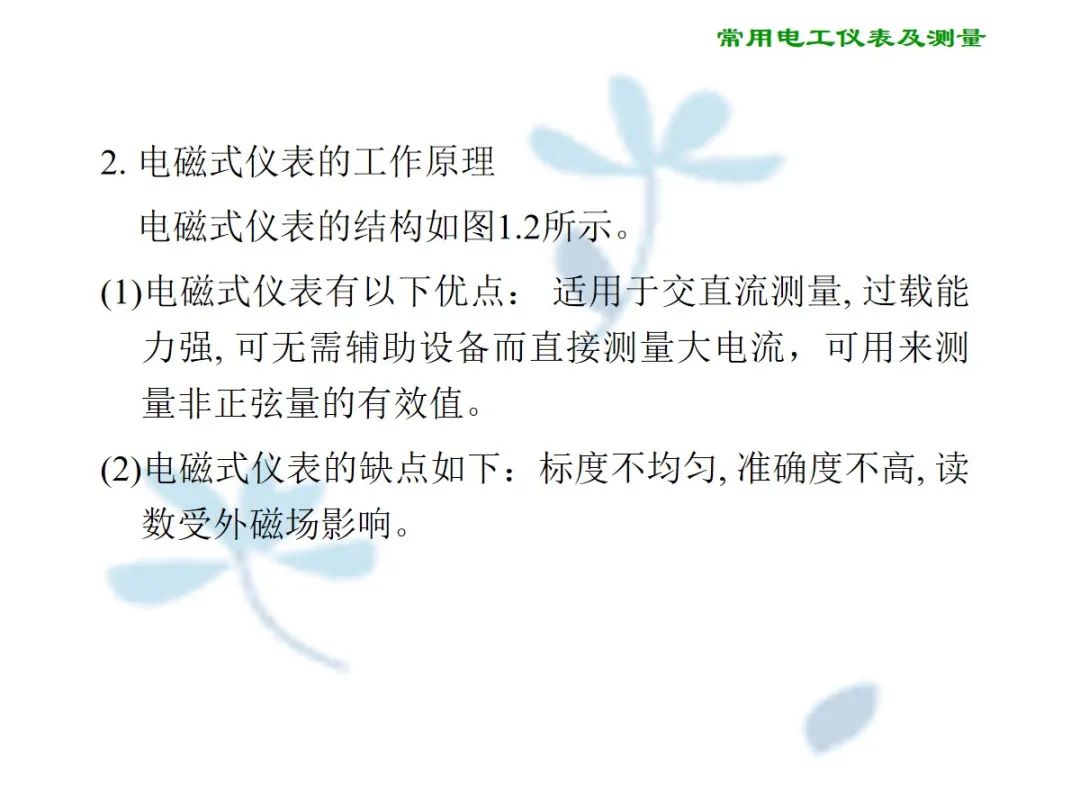 测量直流电流时,较为普遍的是选用磁电式仪表,也可使用电磁式或电动式仪表。测量交流电流时,较多使用的是电磁式仪表,也可使用电动式仪表。对测量准确度要求高、灵敏度高的场合应采用磁电式仪表;对测量精度要求不严格、被测量较大的场合常选择价格低、过载能力强的电磁式仪表。