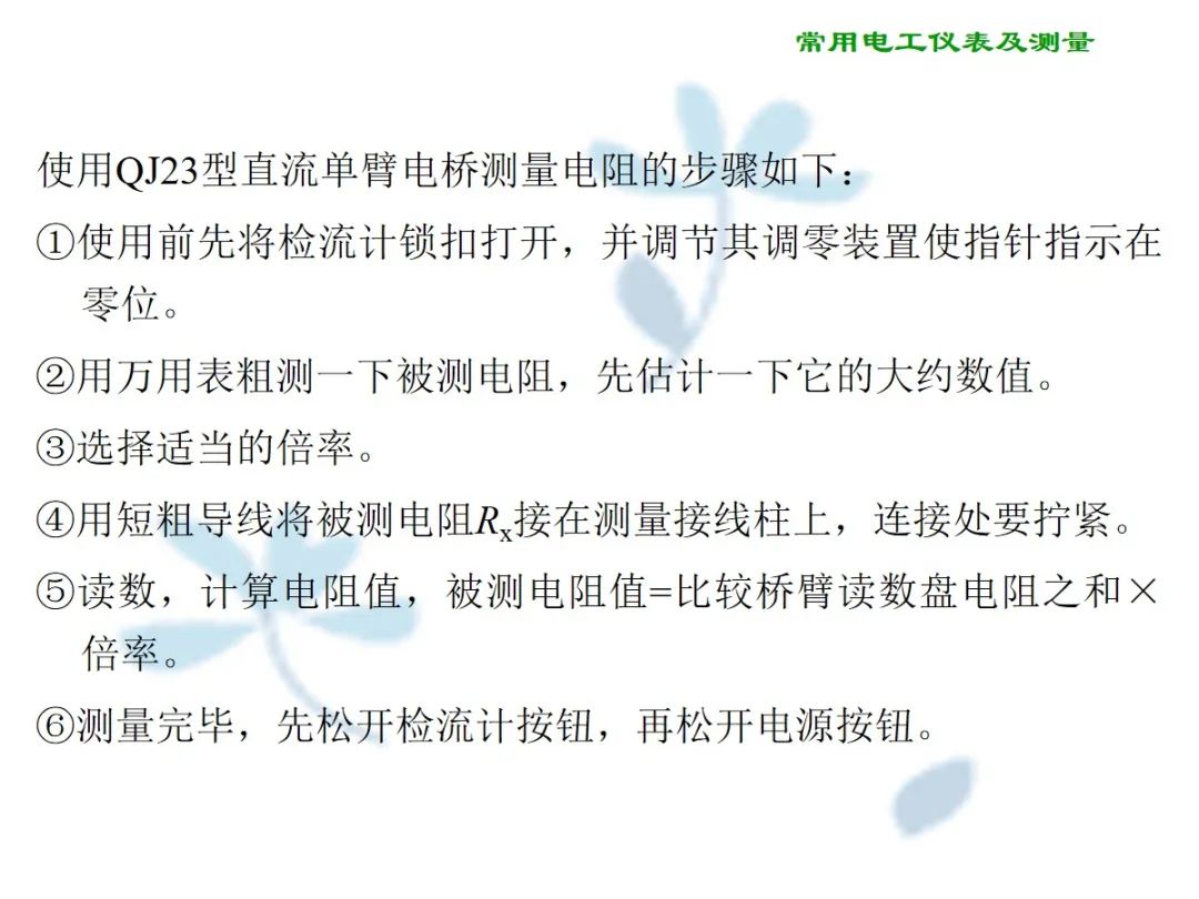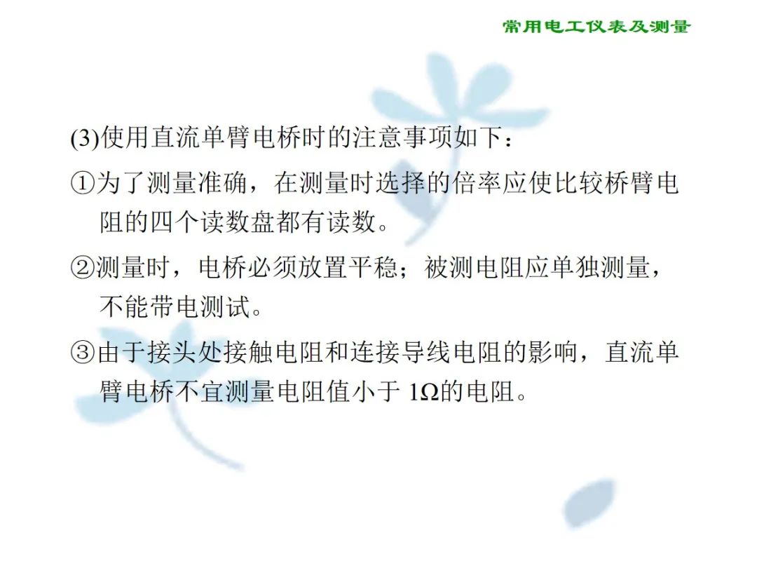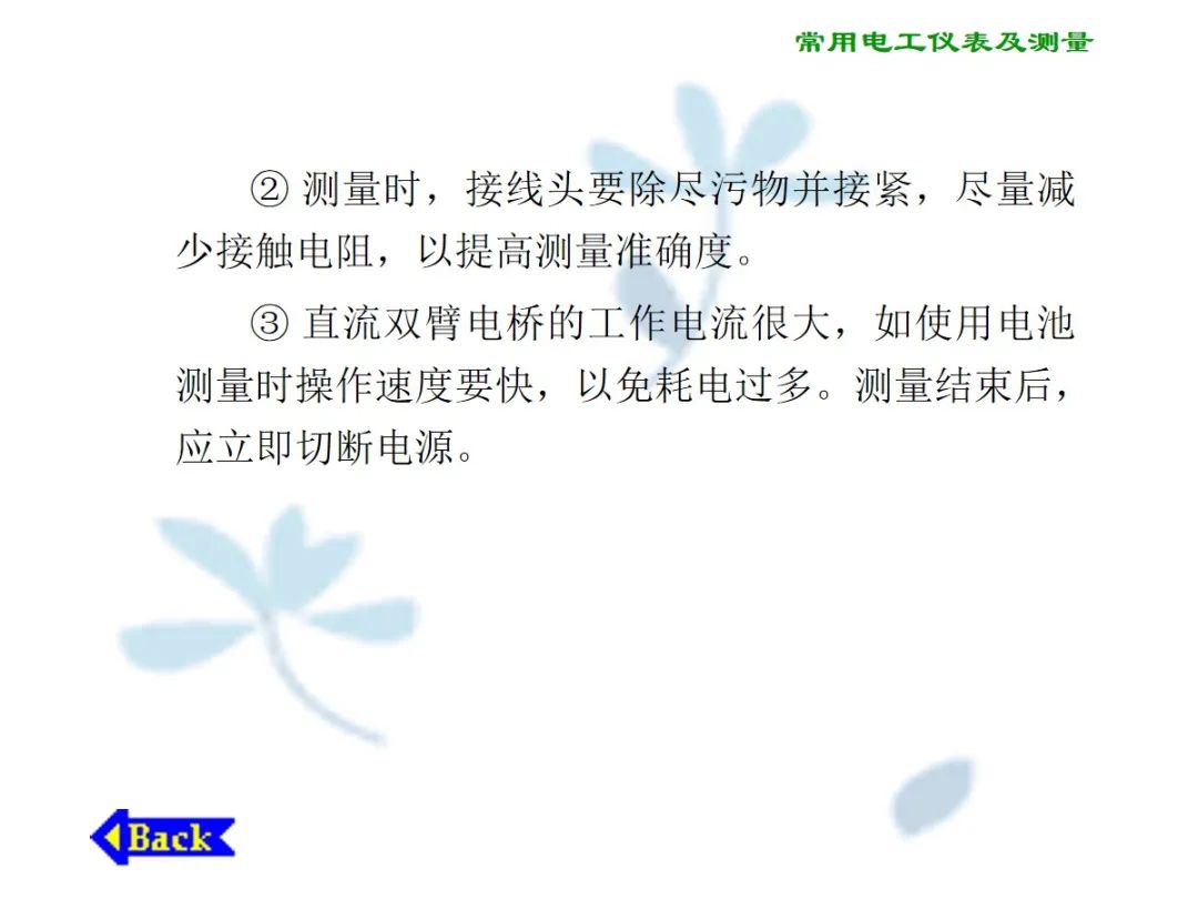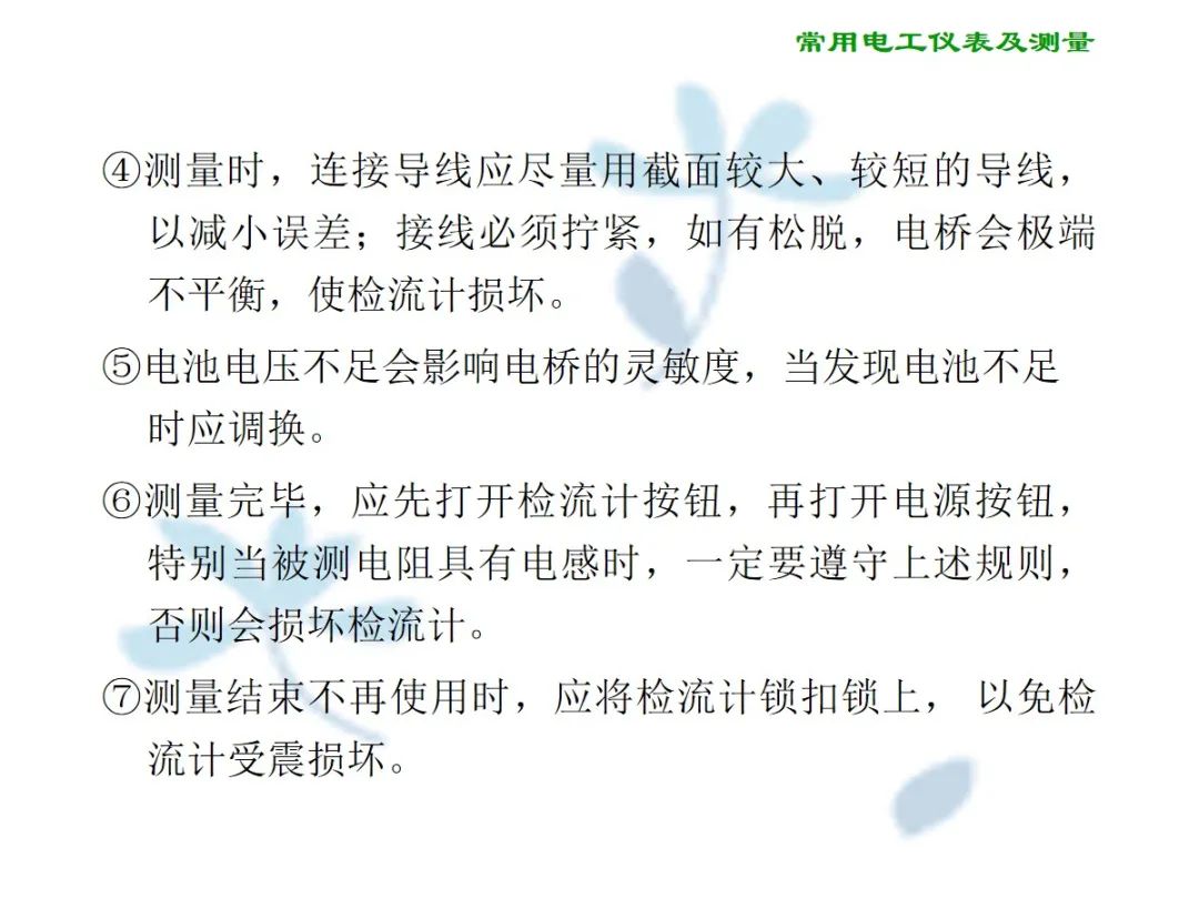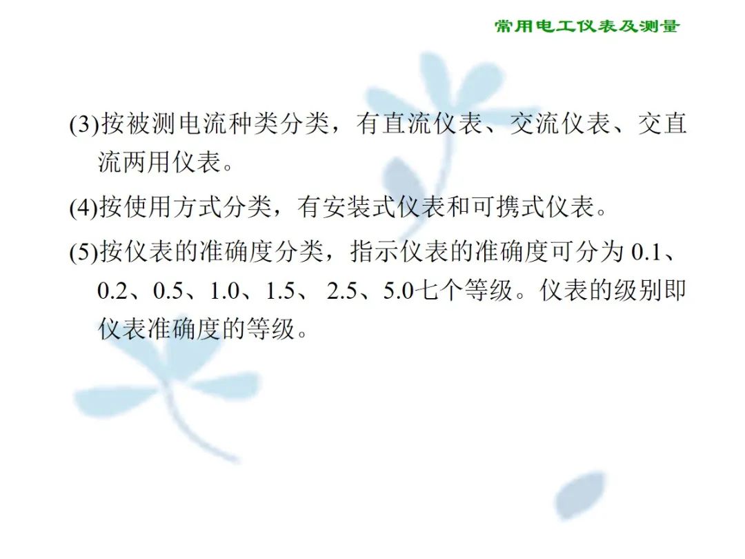 (4)选择合适的准确度以满足被测量的需要。电流表具有内阻,内阻越小,测量的结果越接近实际值。为了提高测量的准确度,应尽量采用内阻较小的电流表。