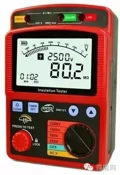 测量额定电压在500V以上的设备或线路的绝缘电阻时,应选用1000~2500V兆欧表;测量绝缘子时,应选用2500~5000V兆欧表。