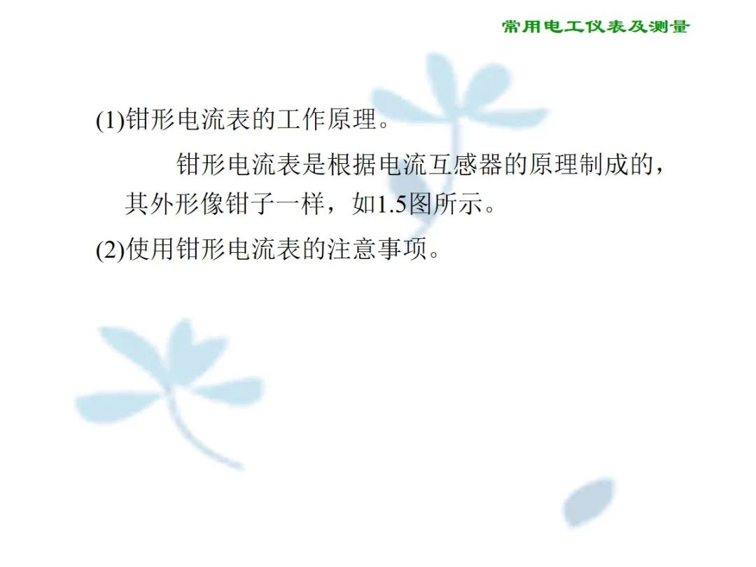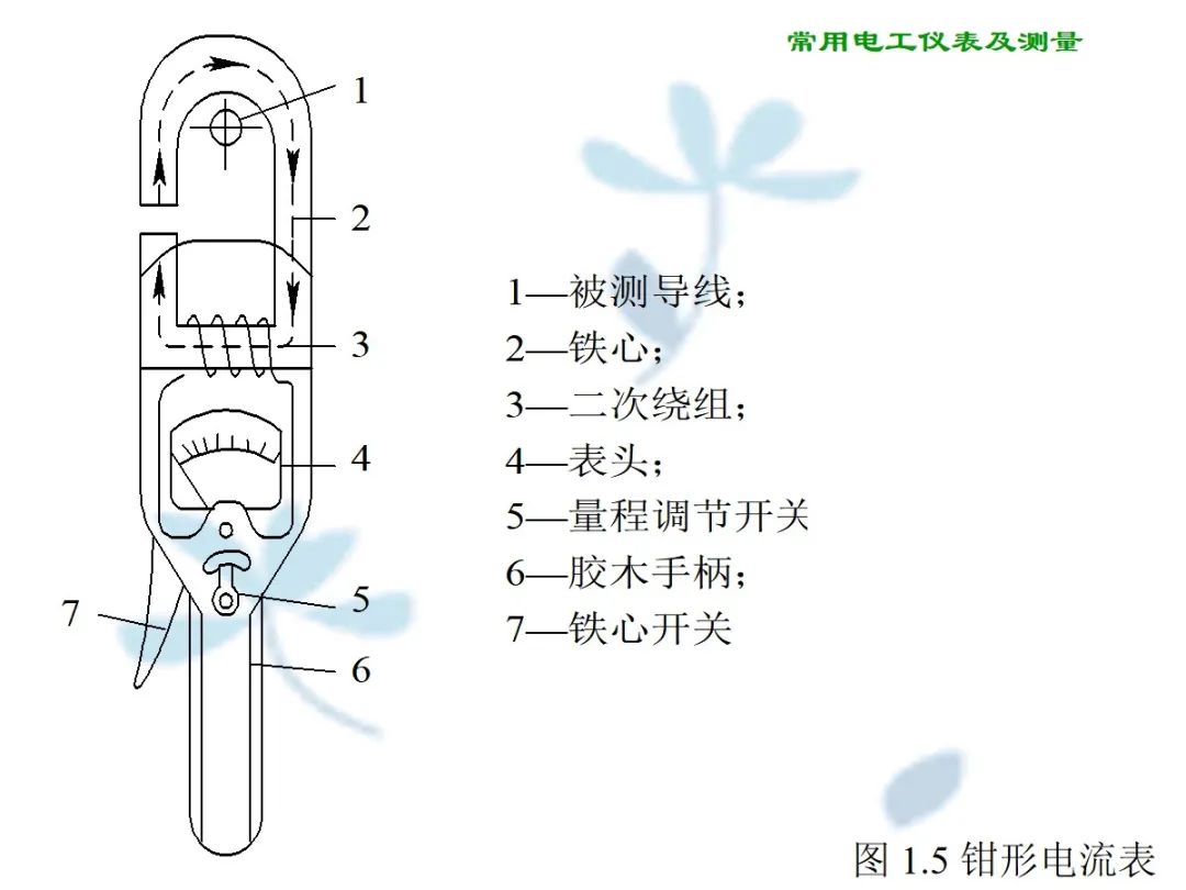 (5)在测量数值较大的交流电流时,常借助于电流互感器来扩大交流电流表的量程。电流互感器次级线圈的额定电流一般设计为5安培,与其配套使用的交流电流表量程也应为5安培。电流表指示值乘以电流互感器的变流比,为所测实际电流的数值。使用电流互感器应让互感器的次级线圈和铁心可靠地接地,次级线圈一端不得加装熔断器,严禁使用时开路。