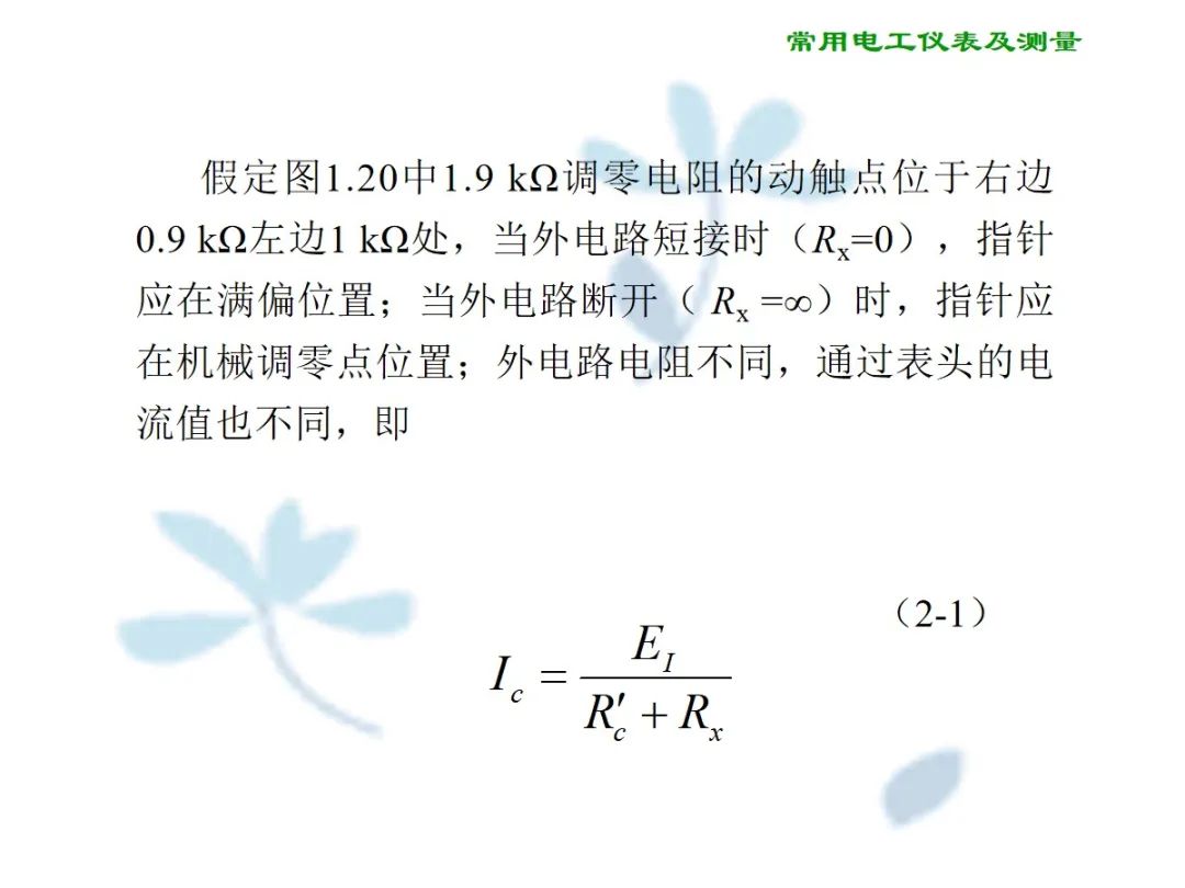 测量电阻之前,应将两根测试棒碰在一起,同时转动“调零旋钮”,使指针刚好指在欧姆标度尺的零位上,这一步骤称为欧姆档调零。每换一次欧姆档,测量电阻之前都要重复这一步骤,从而保证测量准确性。如果指针不能调到零位,说明电池电压不足需要更换。