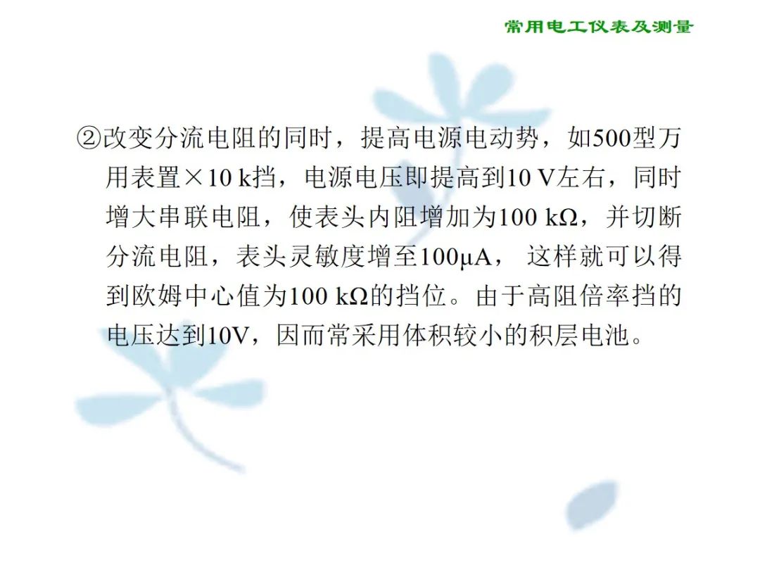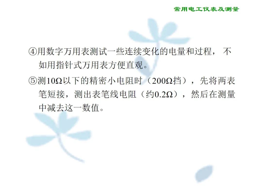 测量电阻时万用表是由干电池供电的,被测电阻决不能带电,以免损坏表头。在使用欧姆档间隙中,不要让两根测试棒短接,以免浪费电池。