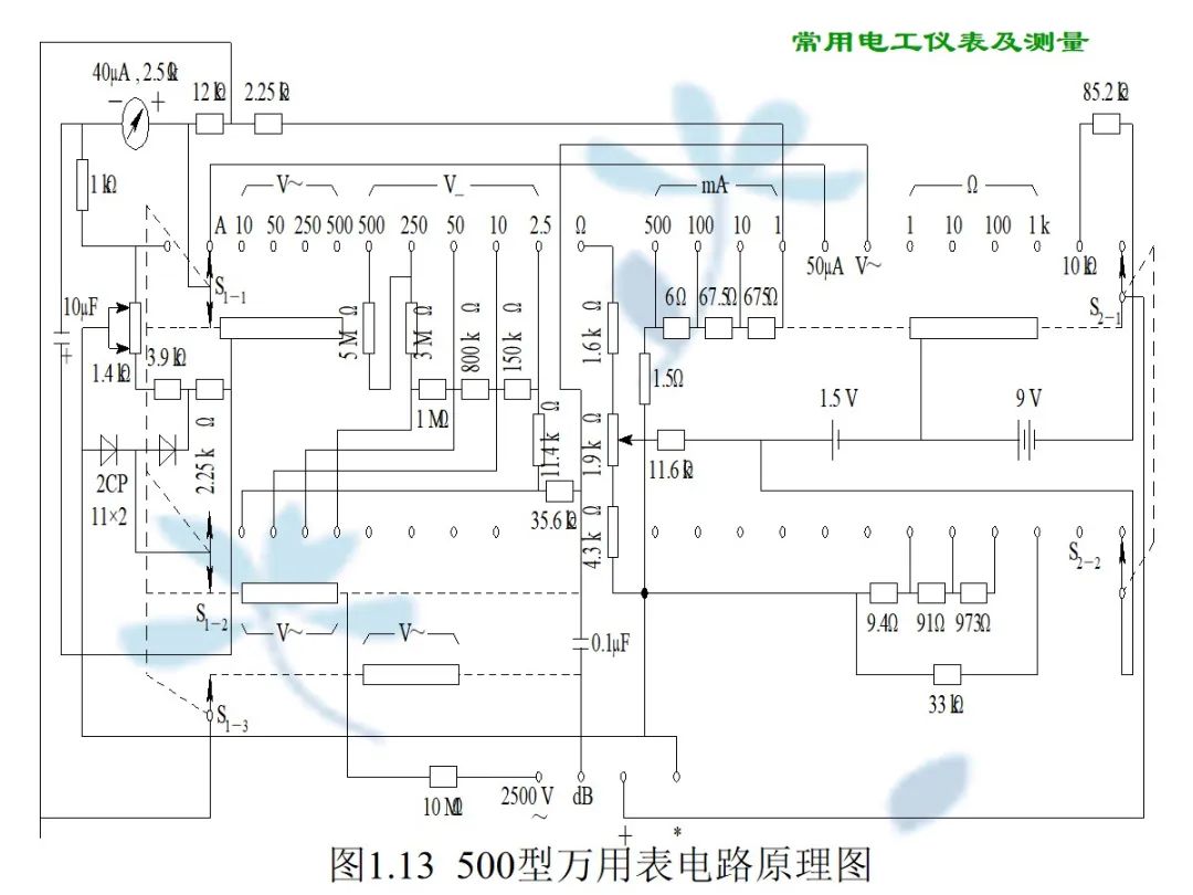 万用表主要由指示部分、测量电路和转换装置三部分组成。指示部分通常为磁电式微安表,俗称表头;测量部分是把被测的电量转换为适合表头要求的微小直流电流,通常包括分流电路、分压电路和整流电路;不同种类电量的测量及量程的选择是通过转换装置来实现的。