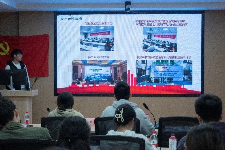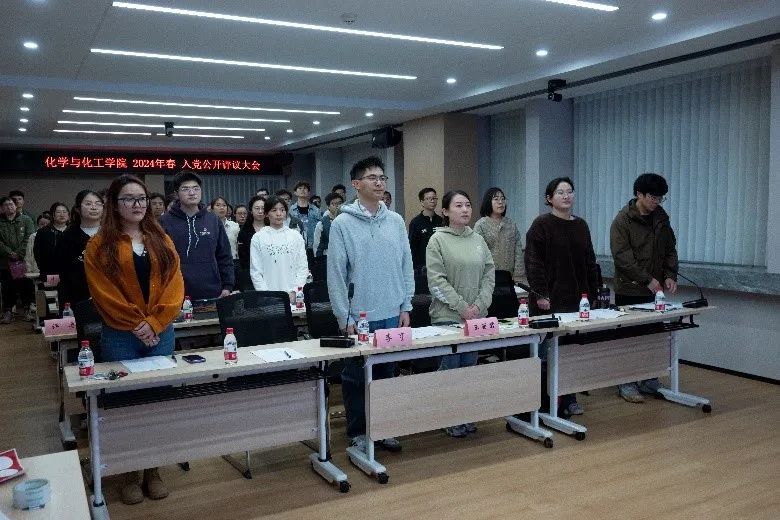 为进一步加强党员队伍建设,切实保证党员发展质量,高质量地向党组织输送优秀人才和新鲜血液,2024年4月11日,化学与化工学院2024年春入党公开评议在化学楼肇隆报告厅顺利举办。党建辅导员王丽君老师,研究生辅导员李亨老师,入党积极分子,党员评委及相关人员共同参与本次会议,会议由党建工作中心陈嘉仪主持。
