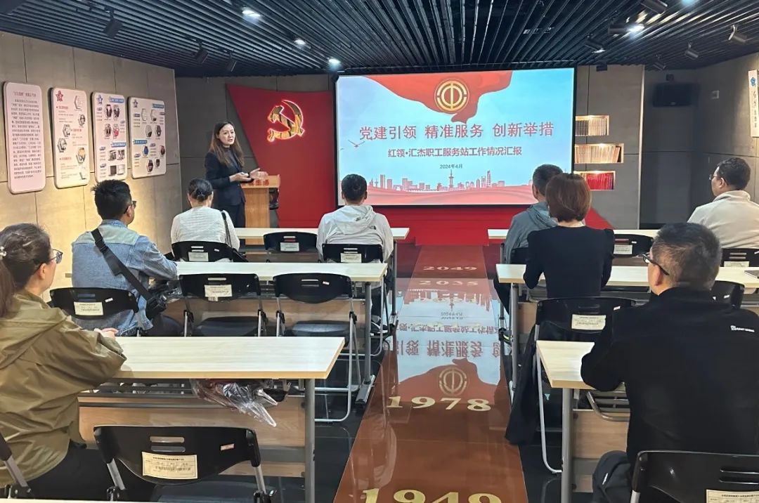 楼宇职工服务站负责人谢婧婧对阵地建设理念、场地运营规划和工作开展情况进行了详细的介绍,主要从党建引领,加强职工思想武装;精准服务,加强工会队伍活力;拓宽思路,加强工会阵地建设和资源共享,充分履行工会职责4个方面重点进行了介绍。她表示,我们通过汇杰楼宇这个平台最大程度发挥了链接资源的作用,并以此为抓手,着力团结引导广大职工听党话、感党恩、跟党走。