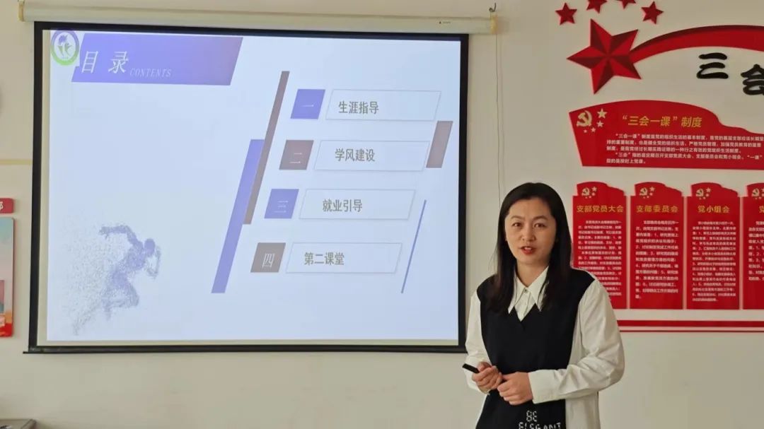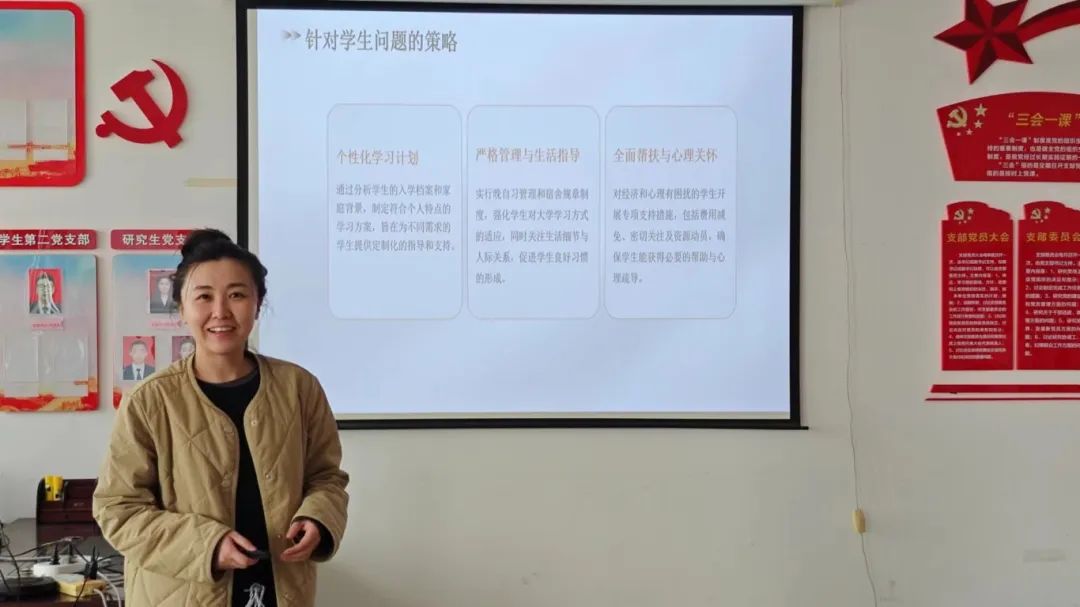 辅导员范成思指出,要深化学生思政建设,深化习近平社会主义思想教育,举行校风班会,进行学生手册领学,开展每日一分钟等活动。让学生在不同阶段进行不同针对性的学风教育帮助学生完成从校园走入社会的转变。