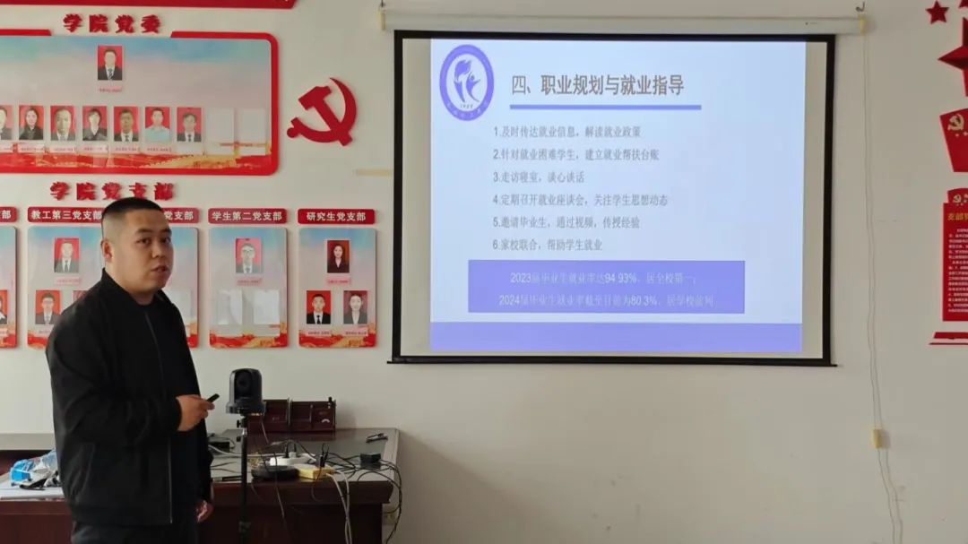 辅导员申烨提出,要重点关心大三大四学生的思想教育与职业规划工作,帮助学生完成人生的转折,明确考研与就业方向,培养学生全方面发展;及时传达就业信息与相关政策,明确帮扶台账,通过一对一谈话,举办座谈会,邀请优秀毕业生演讲,家校联合的方式推动学生就业。