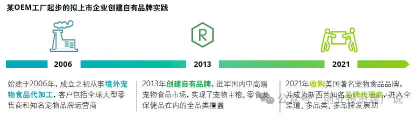 在代工出口锤炼供应链时期,国内宠物食品代工厂以人力成本和品质优势获得海外食品巨头的认可;2013年起代工厂为了拓展毛利空间,通过自有品牌开拓国内市场,实现从代工企业向品牌运营方转型。
