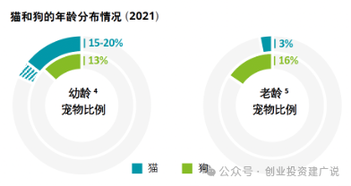 中国早期养宠以狗为主,多年来增速稳定,养猫热潮的兴起则集中在2015-2017,目前绝大多数宠物猫正处于青壮年阶段,而宠物狗已有16%步入老龄阶段,预计宠物狗老龄化将更早一步到来。