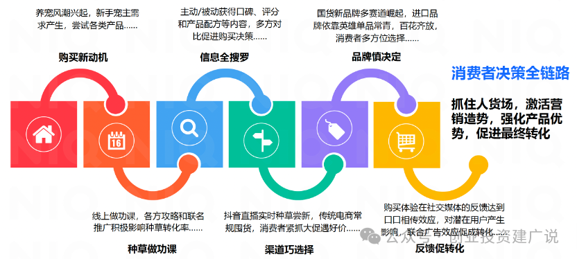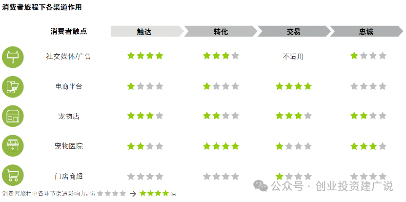 在消费者旅程呈现线上线下融合趋势之际,宠物食品品牌趋向进行全渠道布局,依托社交媒体、宠物店或宠物医院触达消费者,依托电商渠道为消费者提供购买触点