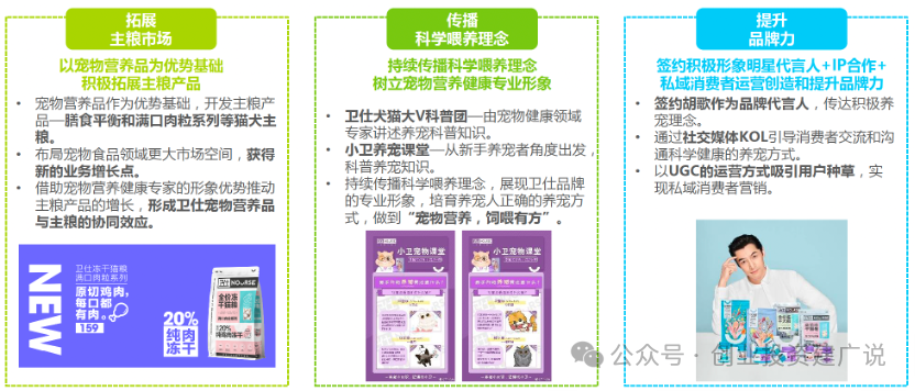 开展更适合中国饲养环境下宠物的营养核心技术创新。配合积极的营销宣传手段持续输出健康、科学的养宠方式,吸引更多当下重视宠物营养健康的养宠人产生共鸣。