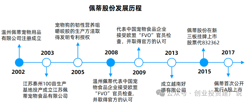 佩蒂股份,创立于1992年,是国内宠物咬胶生产代工龙头企业,主要从事宠物咬胶的ODM业务,产品主要销往美国、欧洲和澳洲;同时近年来在国内市场通过自有品牌、多渠道拓展,积极开拓国内市场。公司主营宠物食品中的宠物咬胶的研发、生产及销售、同时也拓展了营养肉质零食等其他宠物食品业务。