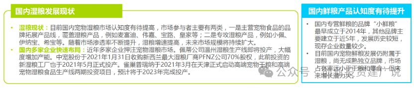 湿粮市场尚未成熟:国内湿粮市场认知度仍有待提高,主营湿粮的市场参与者较少。