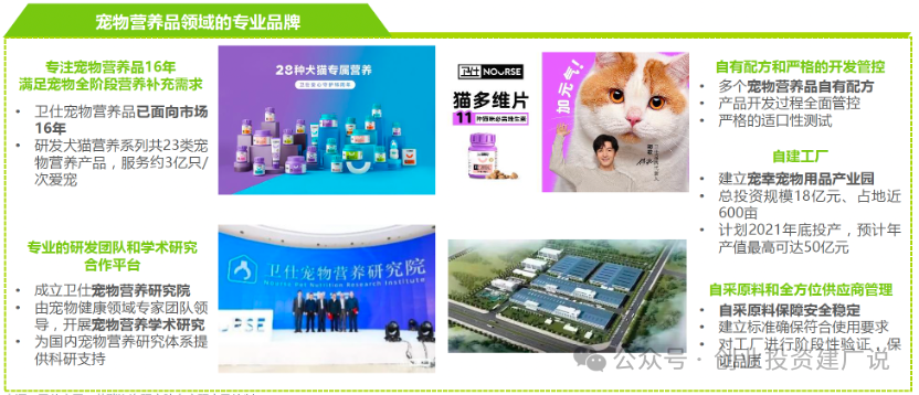 以宠物营养品为优势基础,横向拓展主营产品外的新品类,在宠物营养健康领域持续加码。卫仕熟知宠物食品的相关标准和营养素要求,了解中国宠物的营养补充需求,有针对性地开发主粮产品。