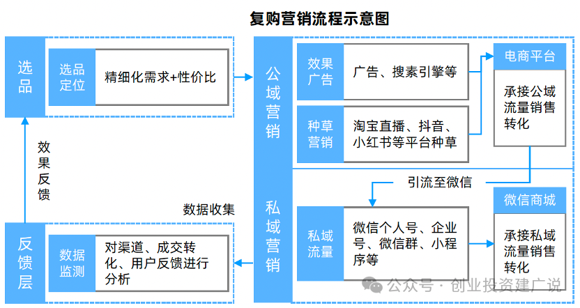公域营销:公域营销要做到全渠道分发,生产海量消费者导向的内容,如淘宝直播、小红书笔记、抖音带货视频、B站视频、快手视频以及结合特色IP或综艺节目等。淘宝的直播逻辑是爆品+低价折扣+KOL带货,国产品牌通过直播带货的途径可以充分发挥KOL和明星主播的虹吸效应。小红书通过头部KOL制造声量+腰部和尾部博主口碑传播的组合,可以有效地提升用户购买转化。