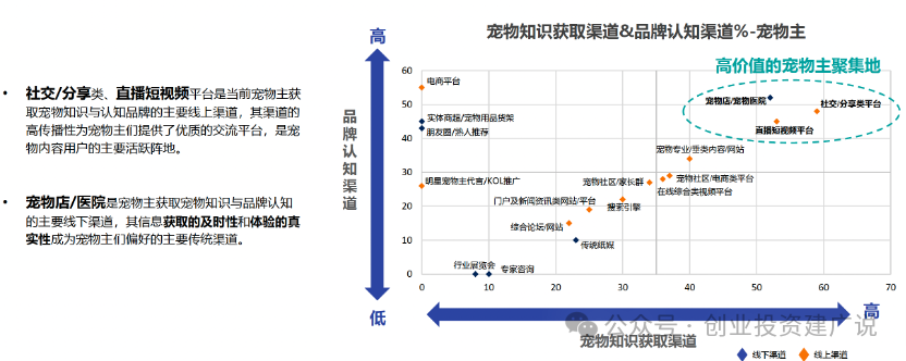 社交平台、直播短视频以及宠物店宠物医院是高价值的宠物主聚集地