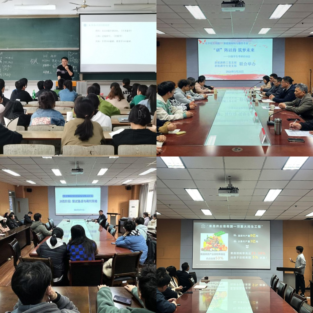党建引领,师生联动。为深化学生对考研的认识,提振考研信心,学院全体师生积极行动,扎实推进考研动员工作。学院四个学生党支部积极联动四个教师党支部,以联合党日活动为契机,分专业开展考研动员会,充分发挥党建引领和党支部战斗堡垒作用,精准导航助力学生考研。此外,学院精心设计调研问卷,深入摸排学生考研关切点,适时举办“研阵以待,筑梦未来”、“研途有你,擘画未来”等考研指导会,旨在全面普及“考研那些事儿”,帮助学生树立目标,积极规划美好未来。