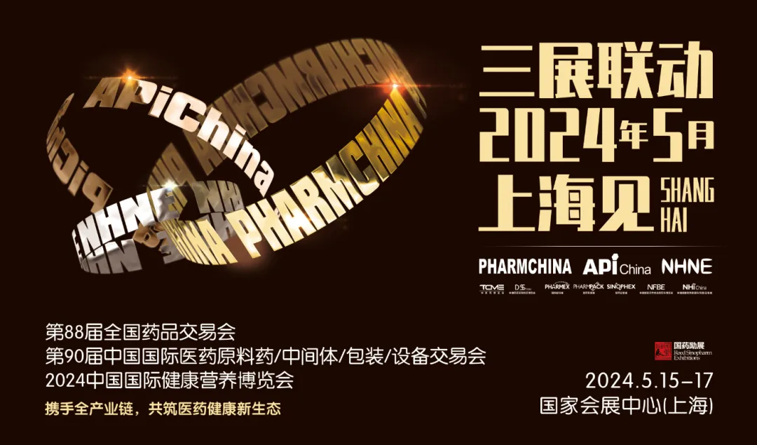 第90届中国国际医药原料药/中间体/包装/设备交易会(API China)、第88届全国药品交易会(PHARMCHINA)和2024中国国际健康营养博览会(NHNE)将携手于2024年5月15-17日,在上海国家会展中心举办。届时将与来自海内外医药、健康营养产业近4000家参展企业、500余位的行业专家、知名学者及预计达到15万人次的参会观众携手,在上海国家会展中心,呈现一场展出面积17万平米、覆盖6个展馆,涵盖原料药、药用辅料、天然产物、医药包装、制药设备、医药制剂、医用耗材、营养与保健品、特医食品、传统滋补品等百余种品类、数万种产品及医药研发、定制生产、物流配送、智慧营销等行业配套服务的相关展示,为医药、健康产业持续做优产业链,做强品牌链,释放高质量发展新动能。