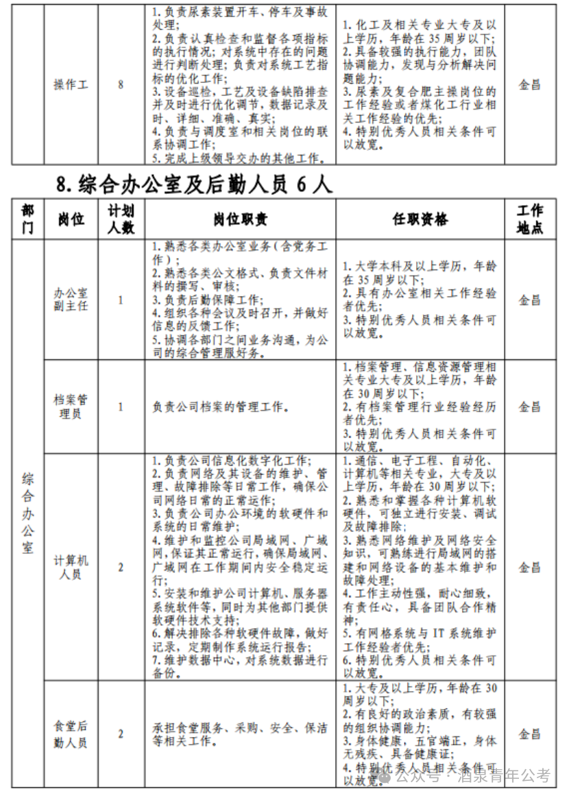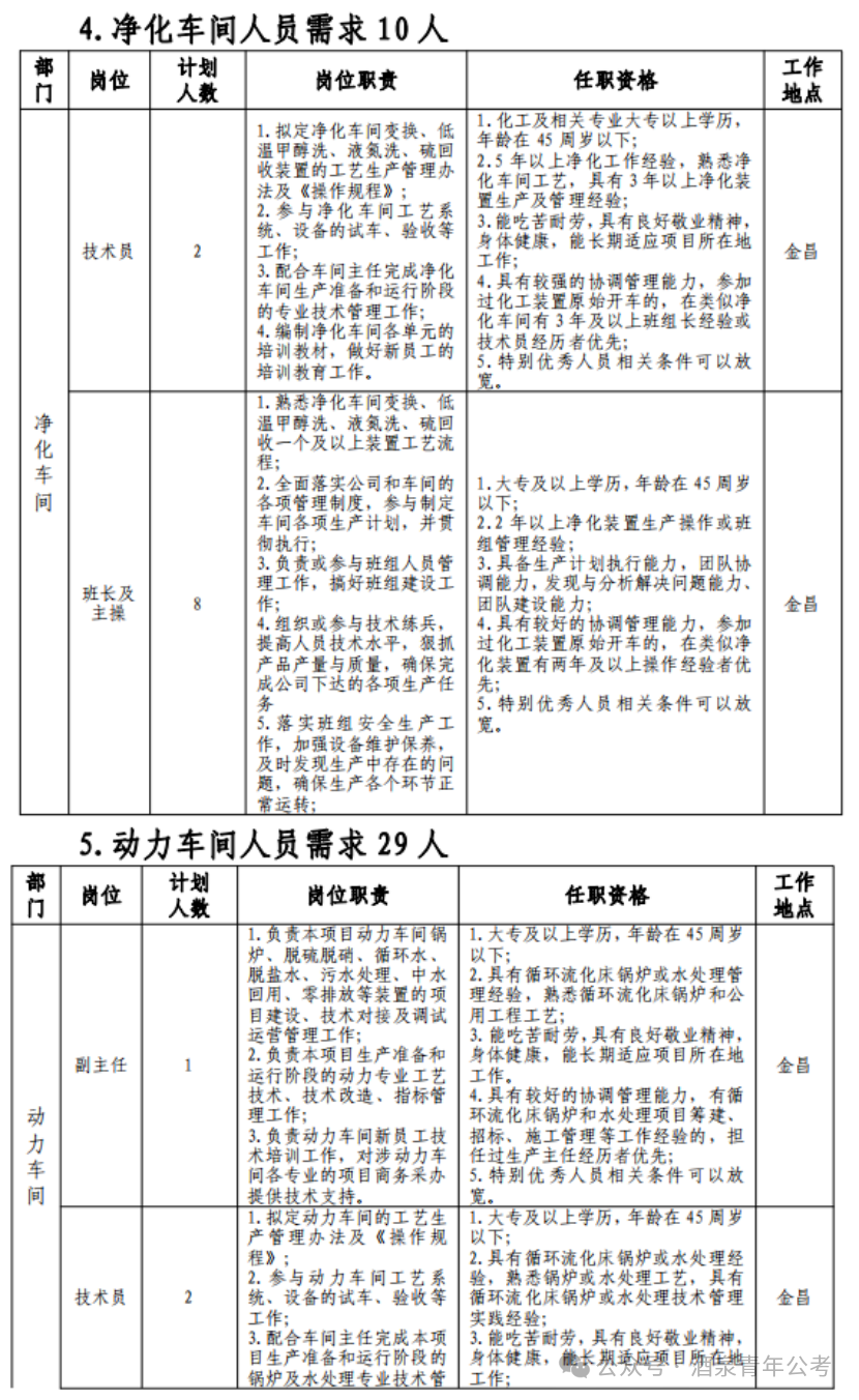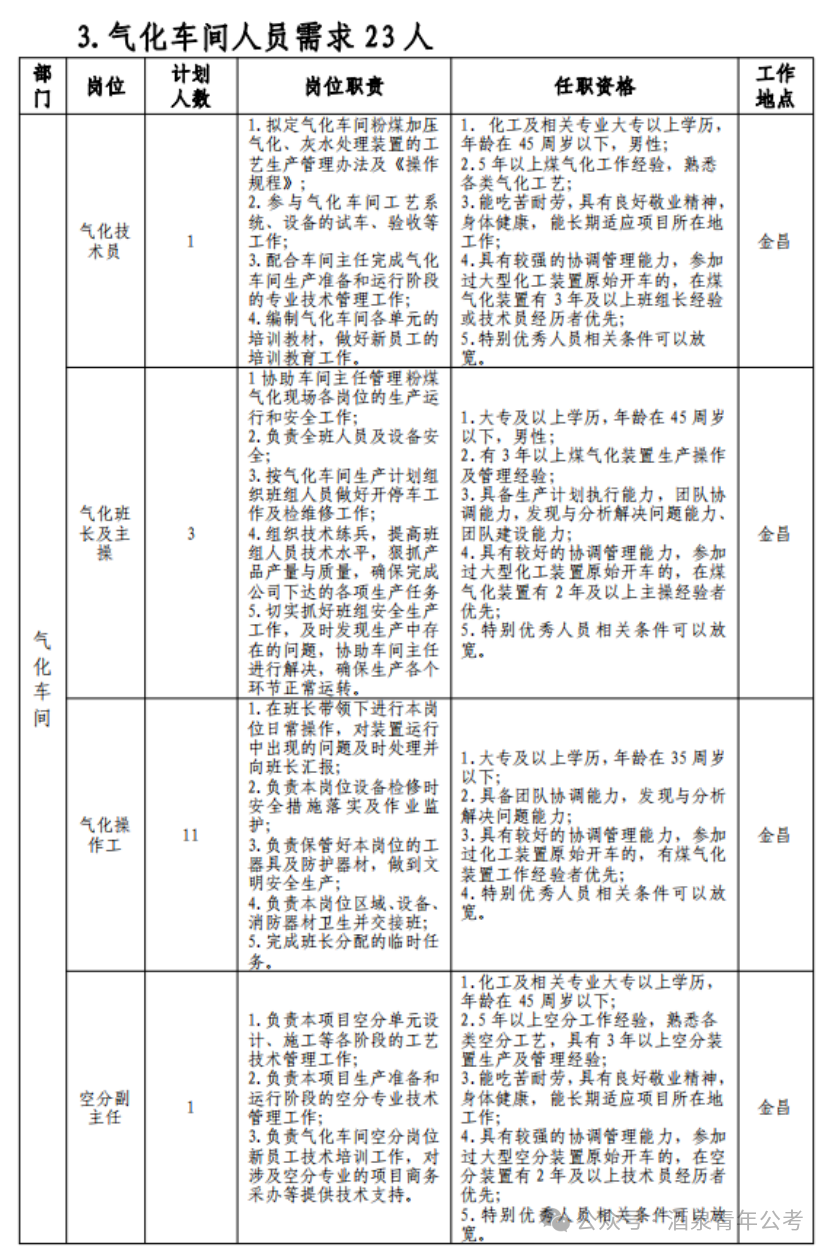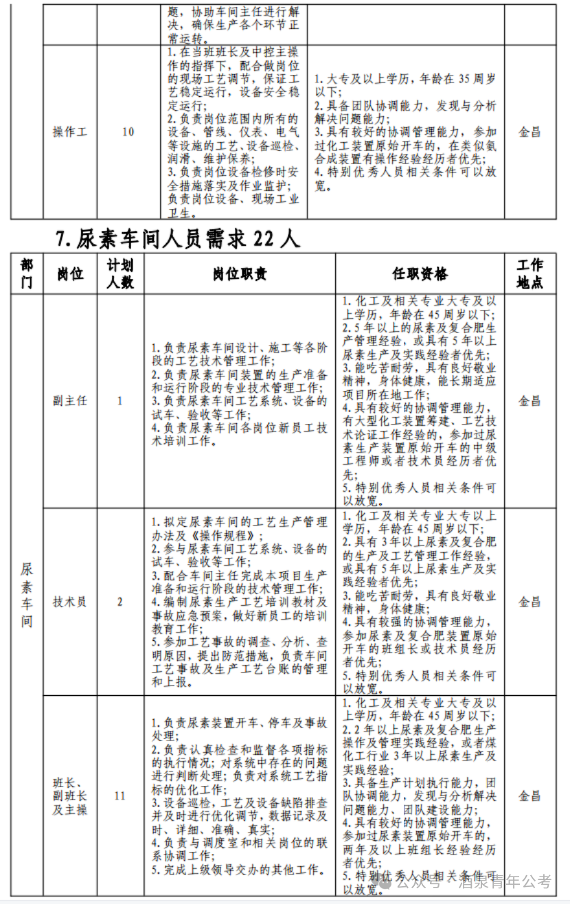 (七)具有突出可查业绩或获得县处级及以上奖励或具有相关专业中级以上职称者可适当放宽年龄限制;应聘人员有化工企业工作经历的优先。