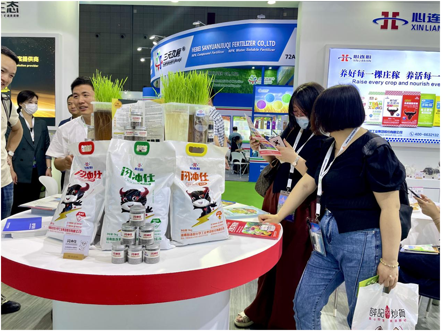本次展会心连心集团大显身手,带来了复合肥、尿素、水溶肥、黑色生态腐植酸等优质产品亮相本次展会,吸引了众多消费者的眼球。