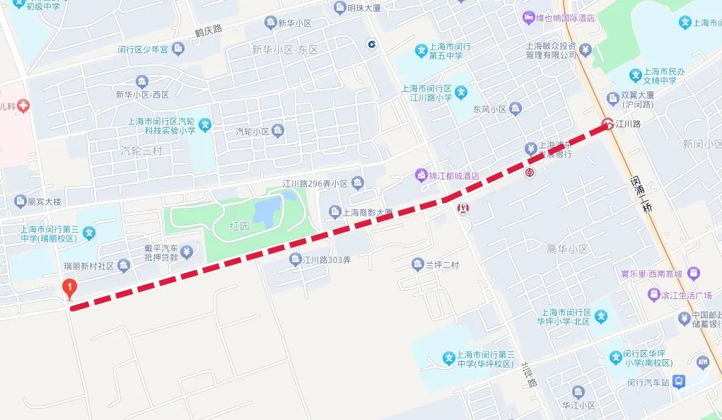 江川路(瑞丽路—沪闵路)路段示意图