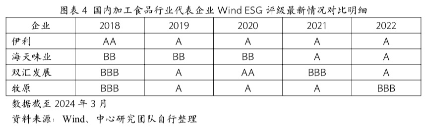 1. Wind ESG评级体系下加工食品行业表现较好、评级集中,缺乏ESG领先企业