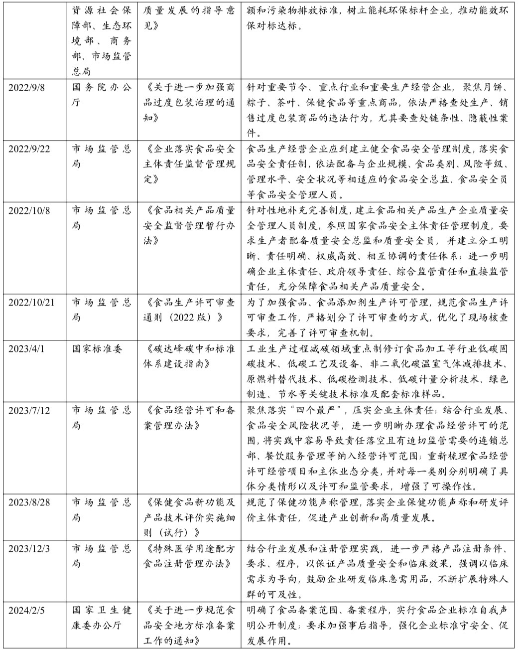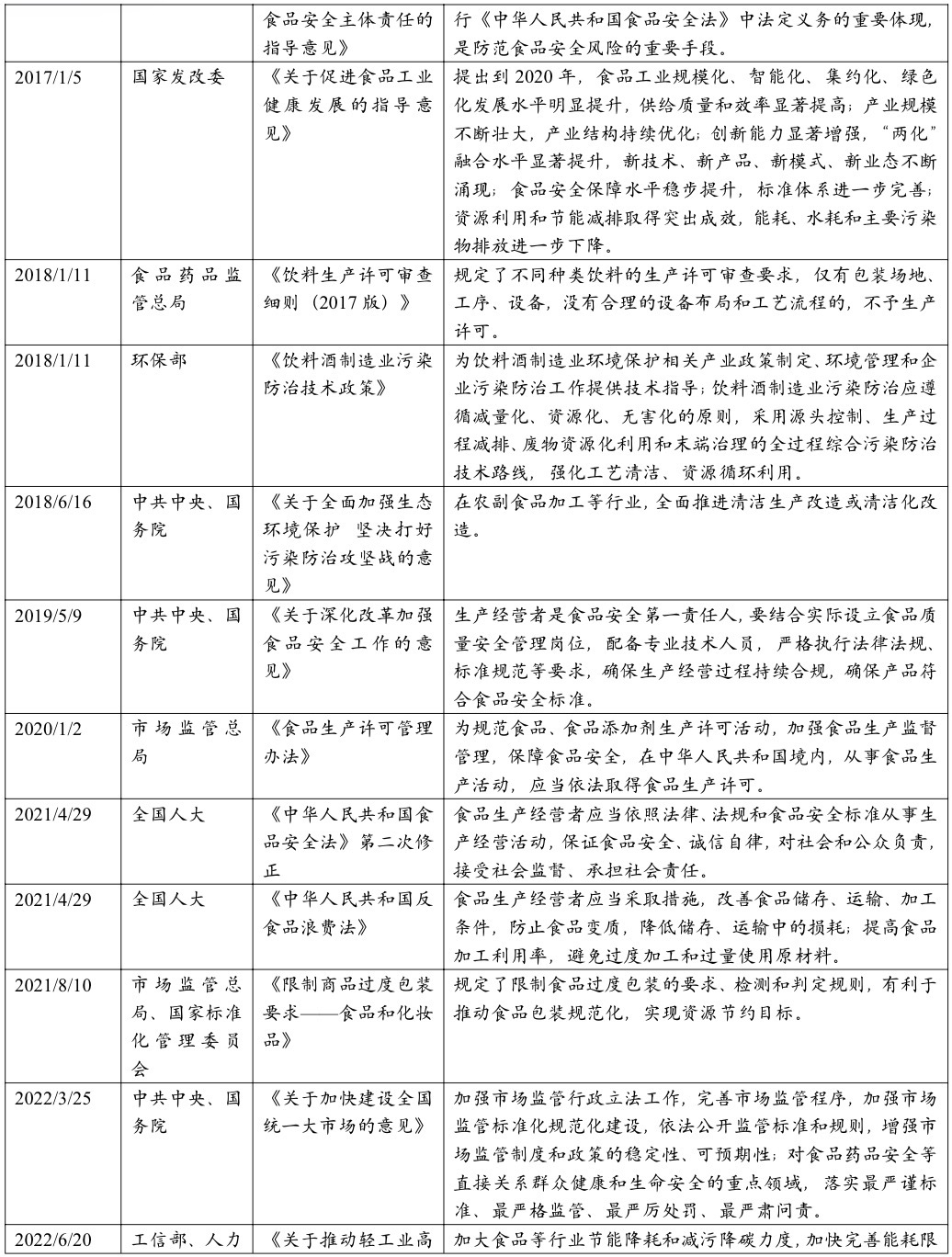 我国近两年各部门密集出台加工食品行业相关政策、国内相关ESG政策不断完善,加快实施加工食品行业清洁化改造,推行产品绿色设计,完善安全监督政策,建设绿色安全制造体系,努力实现加工食品产品制造各个环节的节能化、合规化。政策对加工食品企业社会责任提出了更高的要求,相关问题主要包括资源循环利用、污染物排放、安全生产、产品安全质量管控、流程管控等。