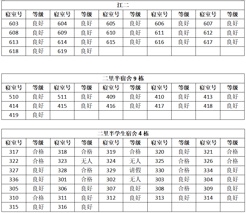 寝室生活是校园生活的核心,是大学生活的重要组成。为了给同学们营造一个干净、舒适的寝室环境,引导和培养学生养成良好的卫生习惯和健康的心理品质,促进其身心健康成长,查寝委员会开展了查寝活动,评分结果如下所示: