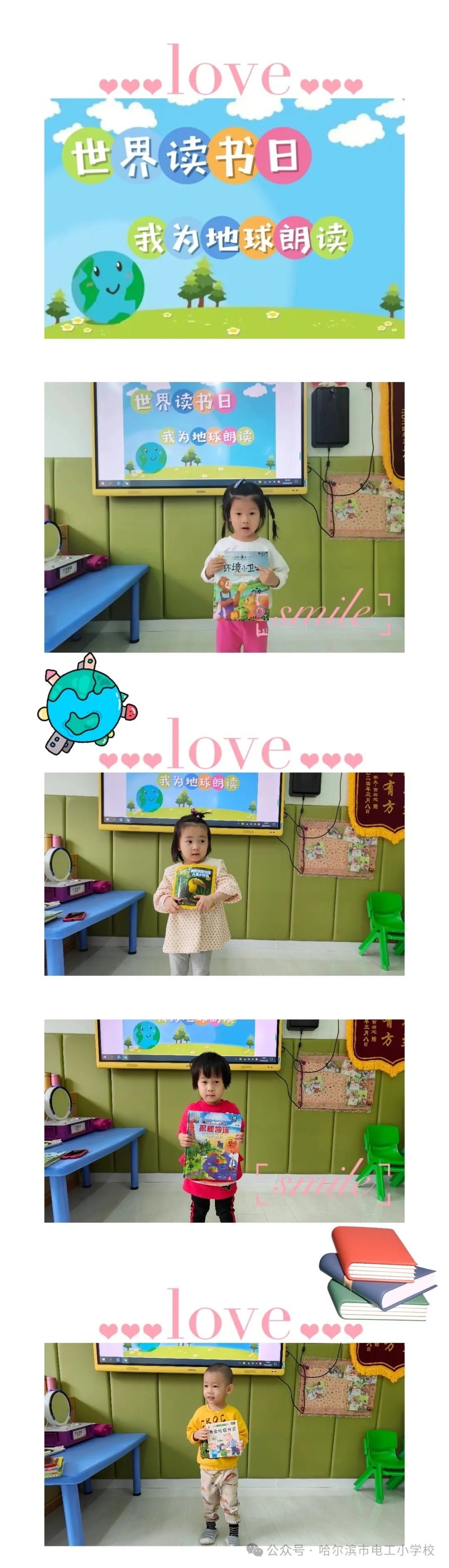 当“世界读书日”遇到“世界地球日”,能碰撞出怎样的火花?4月23日当第29个世界读书日如期而至,电工小学附属幼儿园小班学年开展了以“我为地球朗读”为主题的世界读书日主题活动。师幼围绕绿色环保理念,以阅读实践为纽带,受到了老师、小朋友和家长们积极响应和热情参与,为传递绿色之声献上一份来自电工宝贝的礼物。