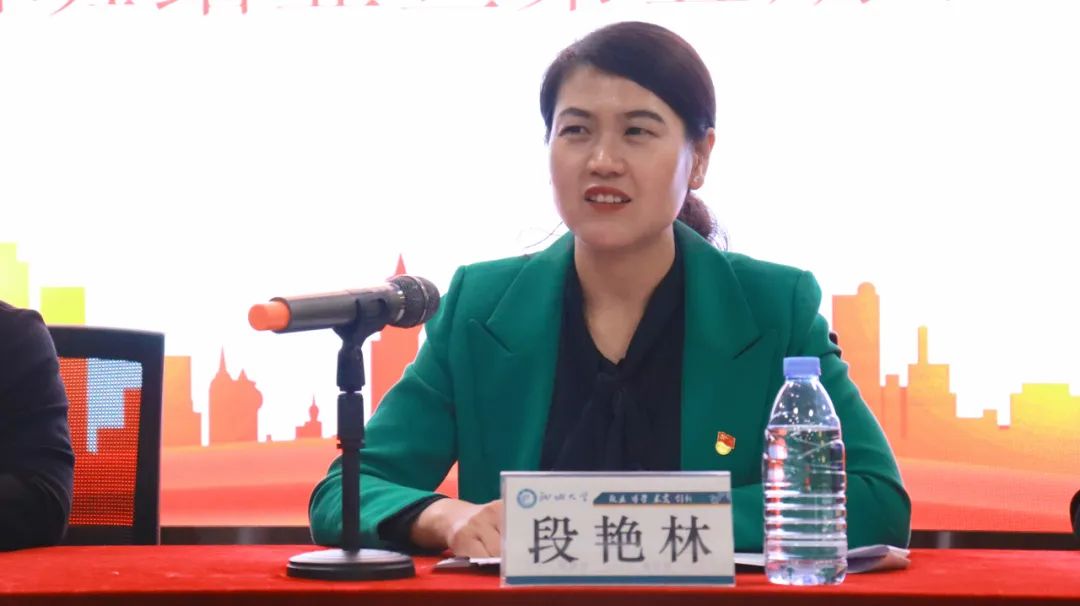 段艳林向大家分享了青马培训班的基本情况及意义,提醒同学们在培训中需要注意的问题,并向大家提出以下三点要求:一是要坚定理想信念,牢记初心使命,要深入学习马克思主义理论,深刻理解社会主义事业的伟大意义,坚定信念,将个人的梦想与社会主义事业的发展紧密相连,为实现国家富强和人民幸福不懈努力;二是要坚持知行合一,增强学习实效,积极参与各种社会实践活动,将学到的知识运用到实际工作中去,通过实践不断丰富和提升自己,实现个人价值与社会价值的统一;三是要明确责任担当,砥砺奋斗,勇于承担起推动社会进步、服务人民群众的重任,积极投身于实现中华民族伟大复兴的伟大事业中,做新时代的奋斗者、贡献者、享有者。