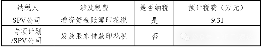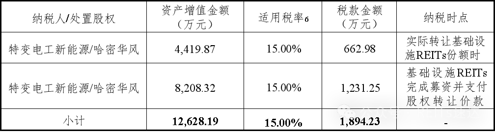 日前,华夏特变电工清洁能源REIT项目针对交易所《关于华夏特变电工新能源封闭式基础设施证券投资基金上市及中信证券-特变电工新能源1号资产支持专项计划资产支持证券挂牌转让申请受理反馈意见》进行了回复,估值端虽然有所调整,但整体估值有所提升,更新后基础设施项目资产组评估值为103,902.00万元;申报时估值规模为103,308.00万元。下调了拟募集资金规模,由原来的130,919.61万元下降至111,880.43 万元。产生差异的原因反馈回复中也给出了解释:拟募集资金规模超过基础设施项目评估价值的部分主要用于购买重组完成后账面剩余货币资金,基金成立后该货币资金作为初始年份基金可供分配金额的重要组成部分。如果不将账面货币资金纳入募集资金范围,本基金成立后前四年的可供分配金额将远低于之后年份,不能反映出本基金的真实分派率水平。基金通过将拟募集资金规模设置为资产评估价值加上账面剩余货币资金及基金预留费用的形式,可以在一定程度上解决由于国补应收账款不能当期收回对初始年份基础设施项目净现金流和本基金可供分配金额的不利影响,使得本基金初始年份的可供分配金额接近基础设施项目的真实盈利水平。当然,在反馈回复中我们也发现了一些亮点,那就是涉及到交易环节的税费测算。不完全统计,目前来讲这应该是首个公开的涉及税费缴纳的计算依据及计算明细;从信息披露的角度这个能够帮助投资者更多的了解项目信息。以下为反馈回复中涉及税费依据、缴费明细及交易流程:本基金将通过搭建SPV结构,项目公司吸收合并SPV承接SPV对专项计划债务的方式完成股债结构搭建,具体交易步骤及各环节对应的税负情况如下:特变电工新能源设立SPV公司,注册资本为100万元,实缴金额为0。根据《国家税务总局关于资金账簿印花税问题的通知》(国税发〔1994〕25号)第一条的规定,生产经营单位“记载资金的账簿”的印花税计税依据为“实收资本”与“资本公积”两项的合计金额。根据《财政部国家税务总局关于对营业账簿减免印花税的通知》(财税〔2018〕第50号),对按万分之五税率贴花的资金账簿减半缴纳印花税。根据2022年7月1日开始执行的《中华人民共和国印花税法》规定,营业账簿印花税税率为实收资本(股本)、资本公积合计金额的万分之二点五。基于上述政策,特变电工新能源新设SPV环节由于没有实缴出资,因此对应需缴纳的印花税金额为0。公募基金募集资金完成后,将募集资金用于认购专项计划资产支持证券,专项计划在收到募集资金后,专项计划管理人代表专项计划/资产支持证券与SPV股东签署《SPV股权转让协议》,购买SPV的100%股权,并支付SPV股权转让价款。由于SPV的实收资本为0,且无其他资产负债,因此其净资产价值为0,专项计划以0对价收购SPV的100%股权。专项计划购买SPV的100%股权,并支付SPV股权转让价款税负分析如下:SPV公司属于非上市企业,其股份属于未公开发行股票,不属于有价证券,转让非上市公司股权不属于增值税征税范围,故特变电工新能源将SPV公司100%的股权转让给专项计划不属于增值税的征税范围。特变电工新能源根据收取的股权对价款以及对于SPV公司的历史投资成本计算股权增值所得及对应所得税,由于SPV并无其他资产且实收资本为0,因此特变电工新能源拟以零对价转让SPV公司股权,转让收入和股权成本均为零,未有收益或损失,无需缴纳企业所得税。SPV公司股权转让过程中,资产支持专项计划与特变电工新能源作为签署股权转让协议的双方,需要按照股权转让协议所载金额缴纳印花税。根据2022年7月1日开始执行的《中华人民共和国印花税法》,股权转让书据印花税税率为价款的万分之五。专项计划收购SPV股权后,对SPV现金实缴增资至37,243.48万元,并同步向SPV发放股东借款5,547.14万元。专项计划收购SPV股权后,对SPV现金实缴增资并向SPV发放股东借款税务分析如下:资产支持专项计划向SPV公司增资后,如果SPV公司的实收资本和资本公积有所增加,则根据《国家税务总局关于资金账簿印花税问题的通知》(国税发〔1994〕25号)及《财政部国家税务总局关于对营业账簿减免印花税的通知》(财税〔2018〕50号)相关规定,其增加的实收资本和资本公积合计金额应按万分之五减半(万分之二点五)征收印花税。根据2022年7月1日开始执行的《中华人民共和国印花税法》,已缴纳印花税的营业账簿,以后年度记载的实收资本(股本)、资本公积合计金额比已缴纳印花税的实收资本(股本)、资本公积合计金额增加的,按照增加部分计算应纳税额。营业账簿印花税税率为实收资本(股本)、资本公积合计金额的万分之二点五。根据《中华人民共和国印花税法》规定,金融组织和借款人所签订借款合同,合同人按借款金额万分之零点五缴纳。SPV与资产支持专项计划签订的股东借款,不属于上述印花税应税书据合同,无需缴纳印花税。表:资产支持专项计划向SPV公司增资并发放股东借款涉税分析SPV根据《项目公司股权转让协议》向原始权益人支付股权转让对价42,790.62万元(初步对价,最终以基金发行规模及届时项目公司交割审计价值进行调整),购买哈密华风100%股权。哈密华风的股份属于非上市企业未公开发行股票,其股权不属于有价证券,转让非上市公司股权不属于增值税征税范围。特变电工新能源将项目公司股权转让给SPV无需缴纳